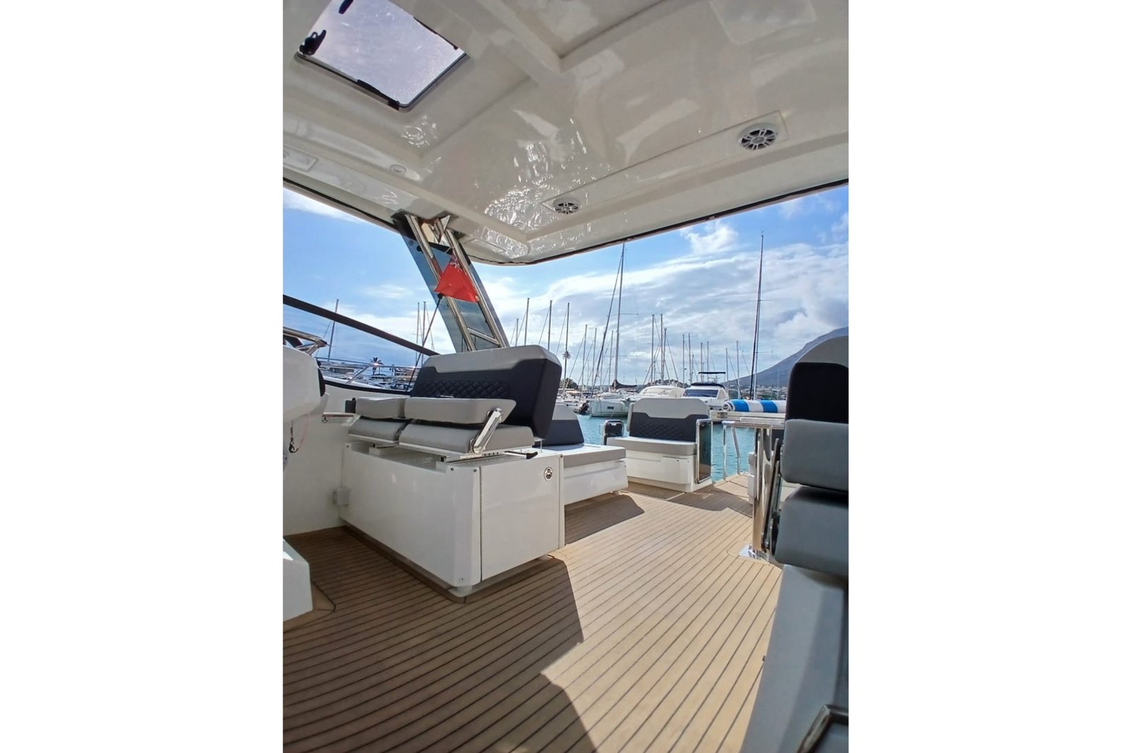 Propulsado por 2 motores Mercury Verado V8 de 300 HP, con sistema joystick piloting(incluye piloto automático, dirección eléctrica y función Skyhook), ofrece una navegación extremadamente fácil, precisa y segura, incluso en maniobras de puerto.