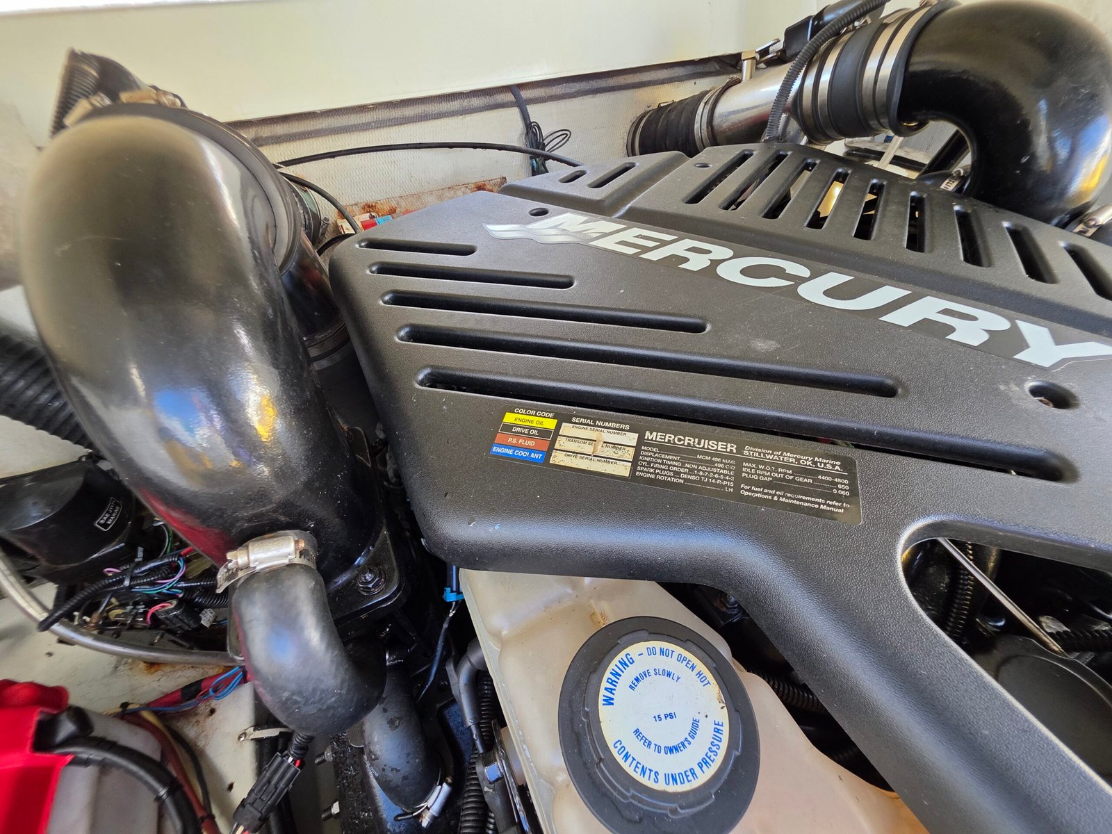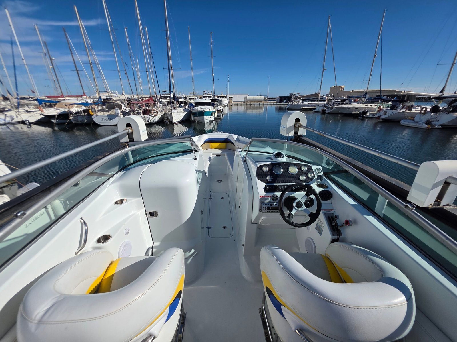 Este modelo destaca por su motor MerCruiser 496 MAG dentro-fueraborda de 370 HP, que la convierte en una lancha de altas prestaciones capaz de ofrecer una navegación ágil y fiable. Con un depósito de combustible de 380 l, está preparada para largas jornadas de navegación con la familia o amigos.
