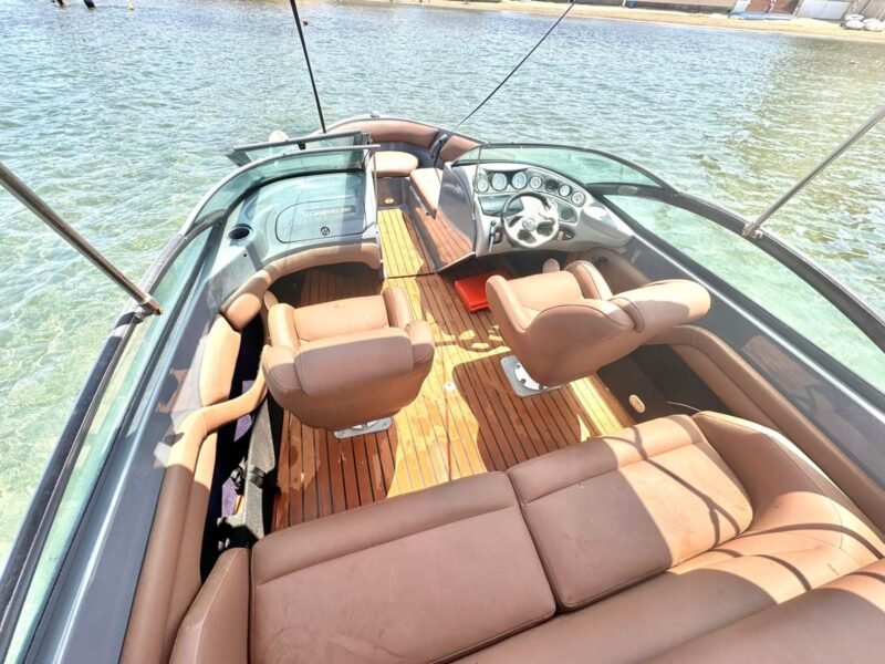 Descubra esta atractiva bow rider de ocasión, la Celebrity BowRider 180 del año 1997 con eslora de 5,41 m y manga de 2,36 m. Con capacidad para 7 personas, motor intraborda Mercruiser 3.0 Gasolina de 100 HP y depósitos de combustible de 100 l y agua dulce de 75 l, está equipada para disfrutar del mar con familiares o amigos. Su velocidad de crucero ronda los 25 nudos. En su bañera cuenta con altavoces de música, ducha, escalera de baño, mesa, toldo bimini, solárium y plataforma de baño para que cada jornada a bordo sea cómoda y divertida. En cuanto a electrónica, dispone de un chart-plotter, GPS, sonda de pesca y sondas de profundidad, además de VHF portátil. Su diseño abierto la convierte en una lancha versátil, ideal tanto para paseos costeros como para deportes acuáticos. Forma parte del stock de ocasión de Interyachts, que garantiza unidades revisadas y listas para navegar. Aproveche esta oportunidad para adquirir una embarcación que combina tamaño compacto, funcionalidad y equipamiento completo.