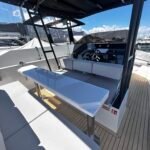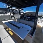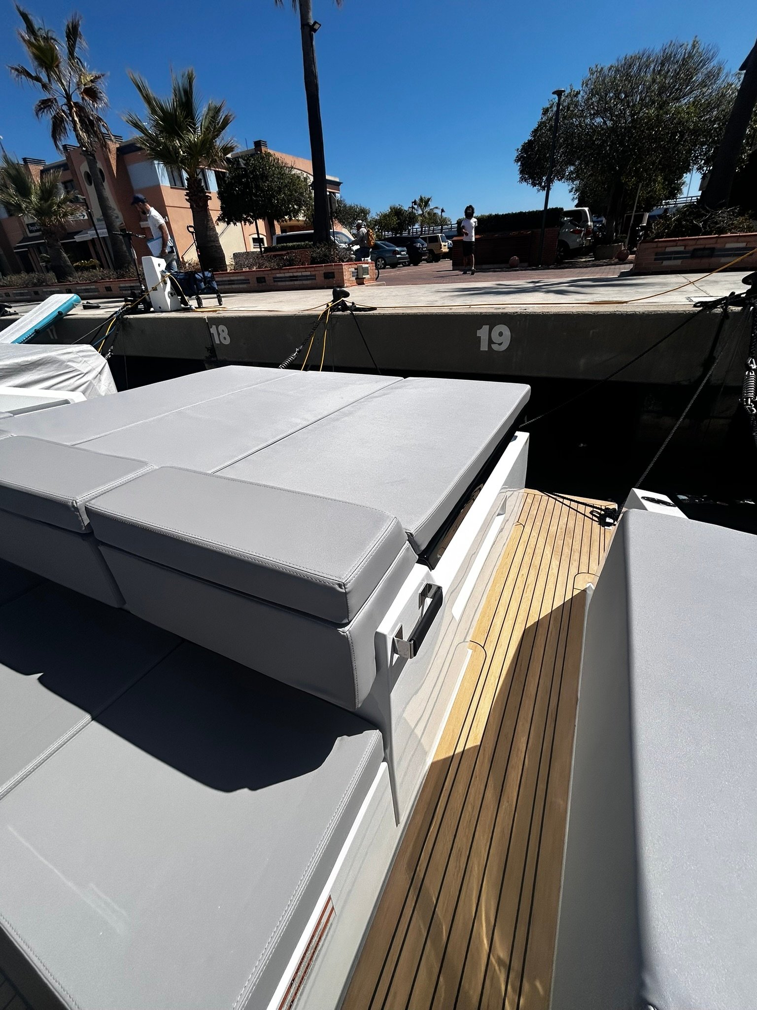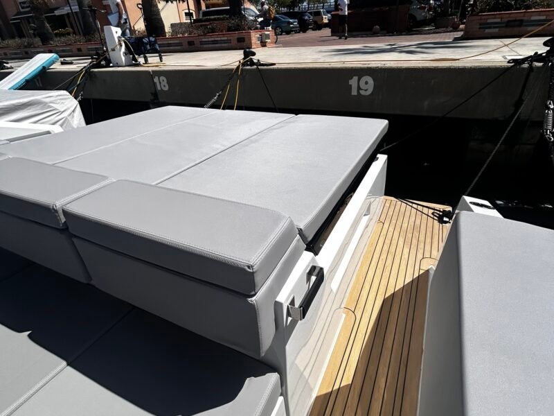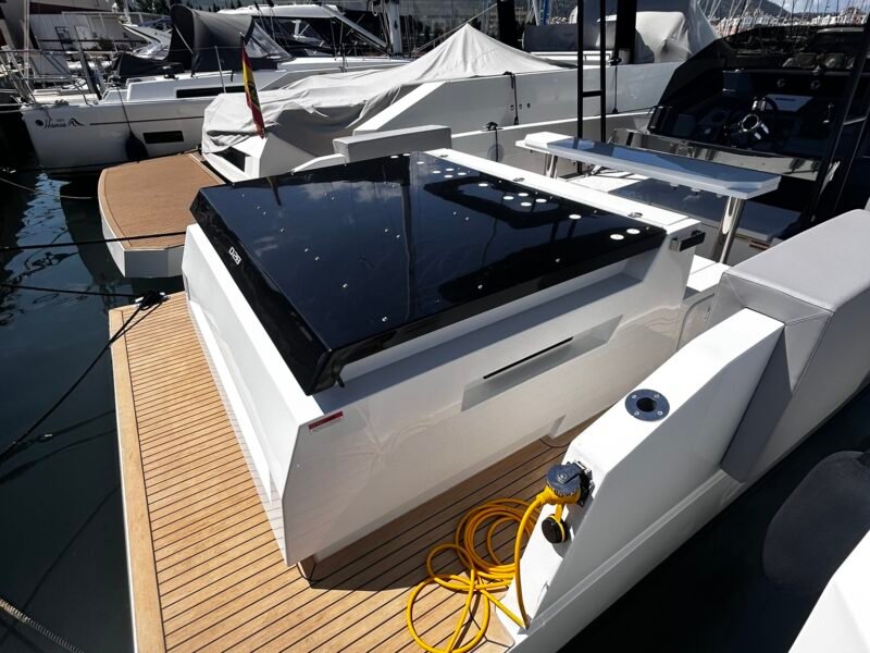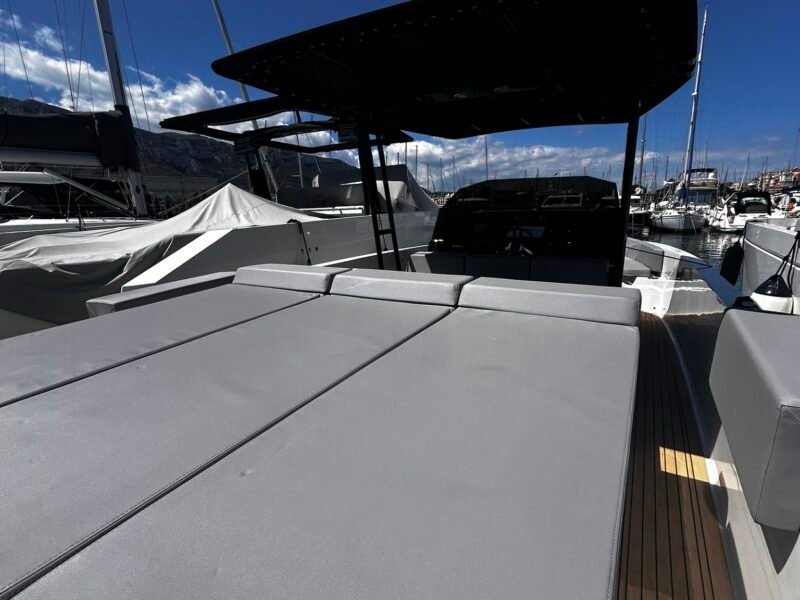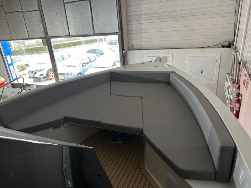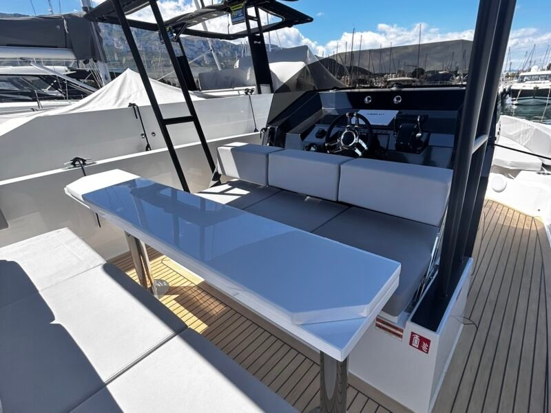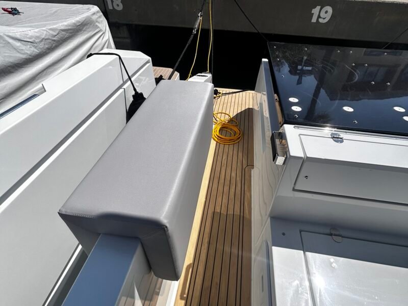 La distribución de los volúmenes permite una cómoda circulación periférica siguiendo el concepto “walk-around”. El D28 tiene toda la cubierta al mismo nivel ofreciendo diferentes zonas de solárium con asientos y mesas tanto a proa como a popa. El alto nivel de aprovechamiento del espacio es una sensación incomparable, con una capacidad máxima de hasta diez personas, el D28 es el barco de día ideal.