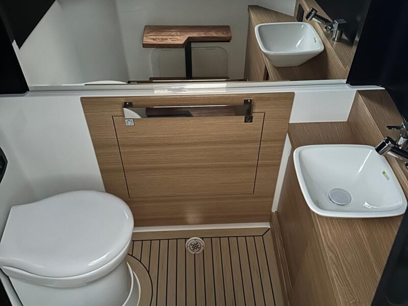La D28 es una lancha de 7,99 metros de eslora. El diseño exterior se distingue por una imponente consola en acabados negros que aporta elegancia y deportividad en el puesto de gobierno. Además, la D28 incluye un baño totalmente equipado, con entrada por proa.