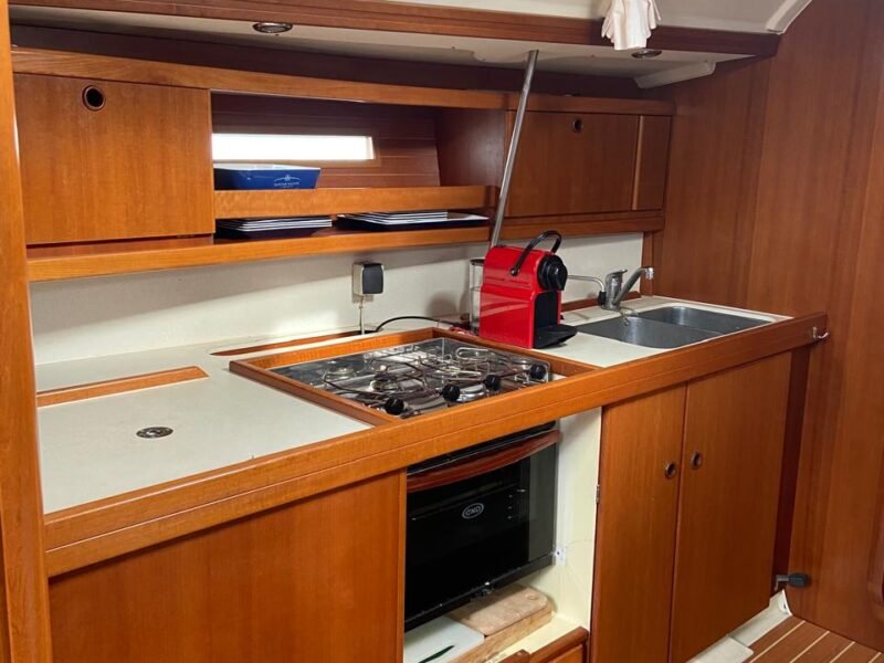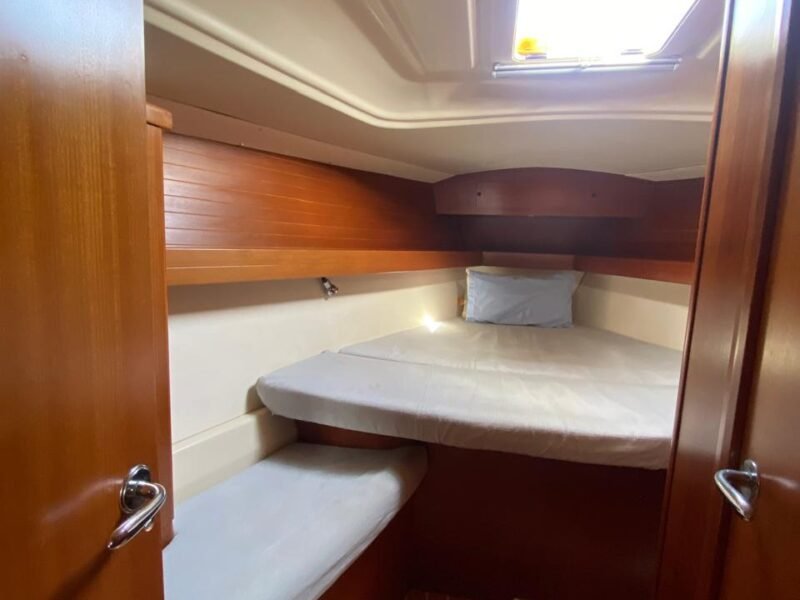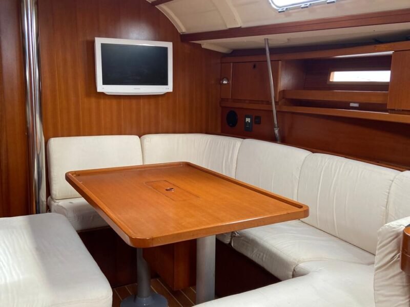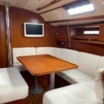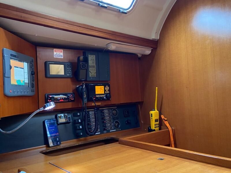 3 Cabinas 2 Baños, Plotter Raymarine C80, Navtex Furuno, Emisora VHF + 1 portátil, AIS, Balsa 8 pax y Radiobaliza, GPS manual Garmin, Equipo de seguridad, Bomba achique manual y eléctrica, Ancla + 50m cadena, Toldo fondeo, Fundas varias, Toldo Bimini + funda, Capota antirociones, Cocina gas con horno, Nevera eléctrica, microondas, Aire acondicionado frío/calor, Calefactor a gasoil, TV con DVD + Antena TV, Placas solares con regulador, Equipo de Audio, altavoces exter., Agua caliente, Luces LED interior, Ducha en bañera, Mayor Fullbaten, Génova enrollable, Spi asimétrico, Tormentín, Bandera polaca (antes española).