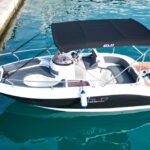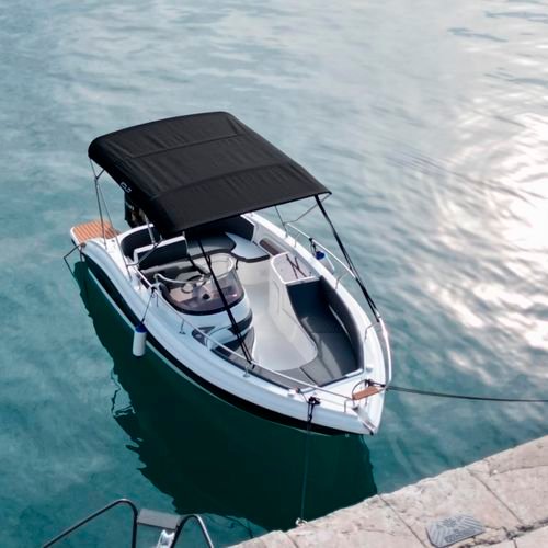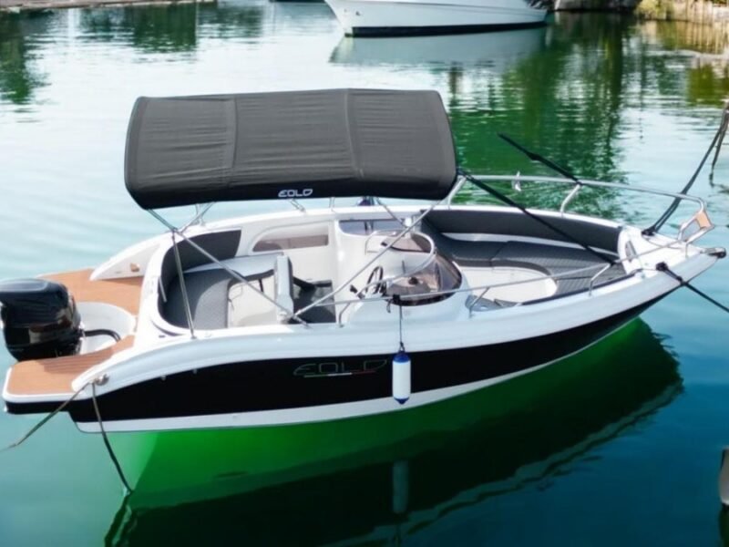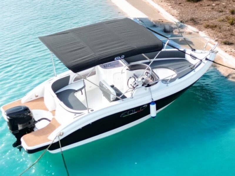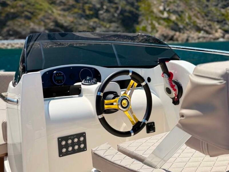 Pie de mesa Depósito de combustible de 96 litros Sistema de agua a presión ducha incluida 39 litros Toldo de sol en Inox 3 arquilladas Toma 12V USB Equipo de seguridad Zona 5 (6 personas)Costes transporte Astillero – Barcelona Montaje del motor + Batería Pintado Epoxi y Antifouling