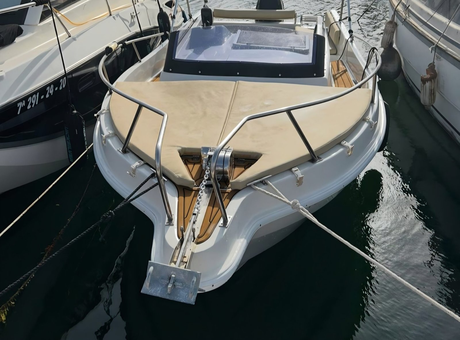 El equipamiento incluye elementos esenciales para la seguridad y el confort, como emisora VHF, GPS, sonda, plataforma de baño con escalera, ducha en bañera y bimini para protección solar. Gracias a su configuración deportiva y su tamaño equilibrado, el Fibresport OCRE 650 Sport es una opción ideal para quienes buscan una embarcación compacta, polivalente y fácil de manejar, perfecta para disfrutar del mar en compañía de familia o amigos.