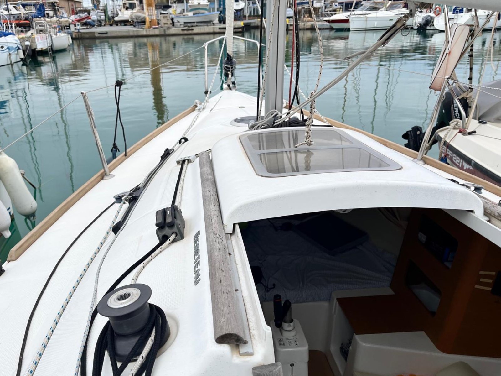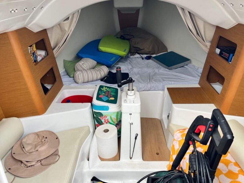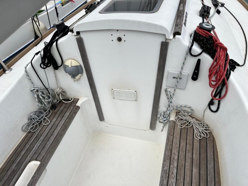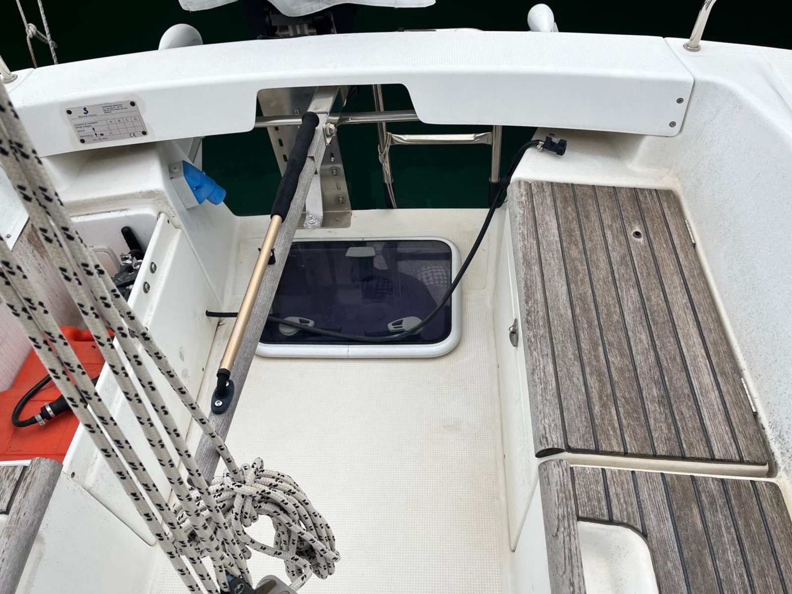 Cuenta con motor auxiliar de 6 CV, mayor y foque, y un equipamiento básico bien pensado que incluye piloto automático, VHF fija y baño químico, ofreciendo comodidad y seguridad para salidas de día o pequeñas escapadas costeras.