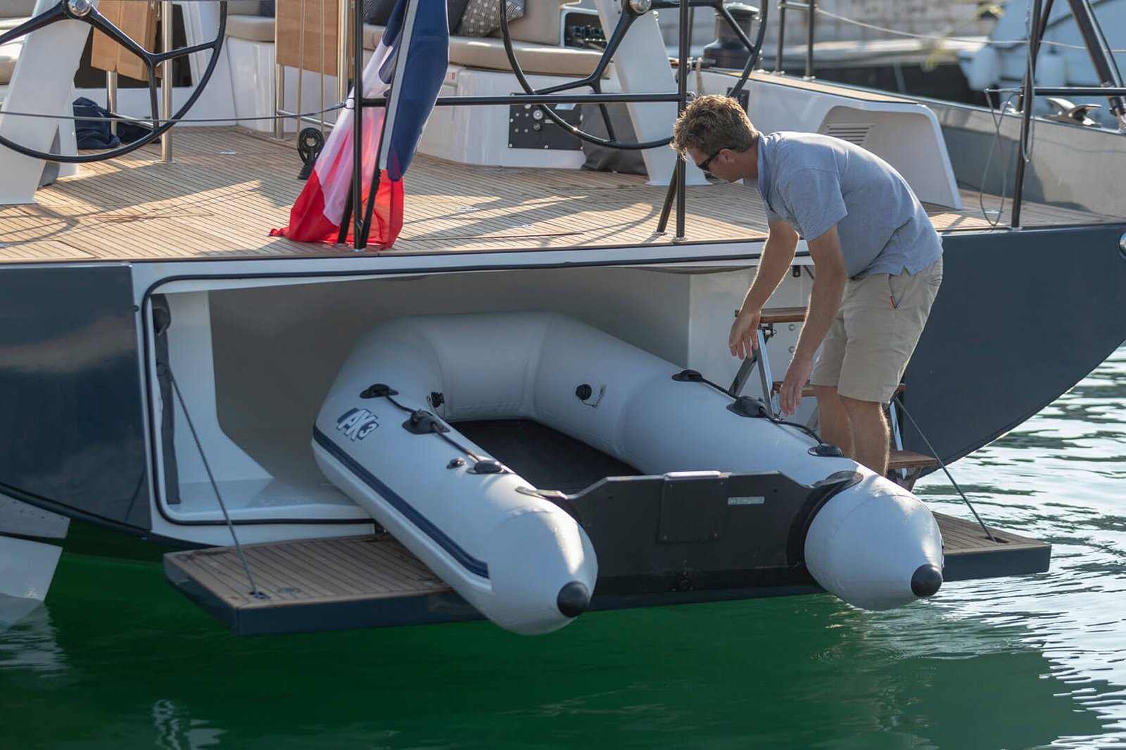 - Propulsor de proa retráctil con baterías dedicadas y cargador 30 A – 24 V