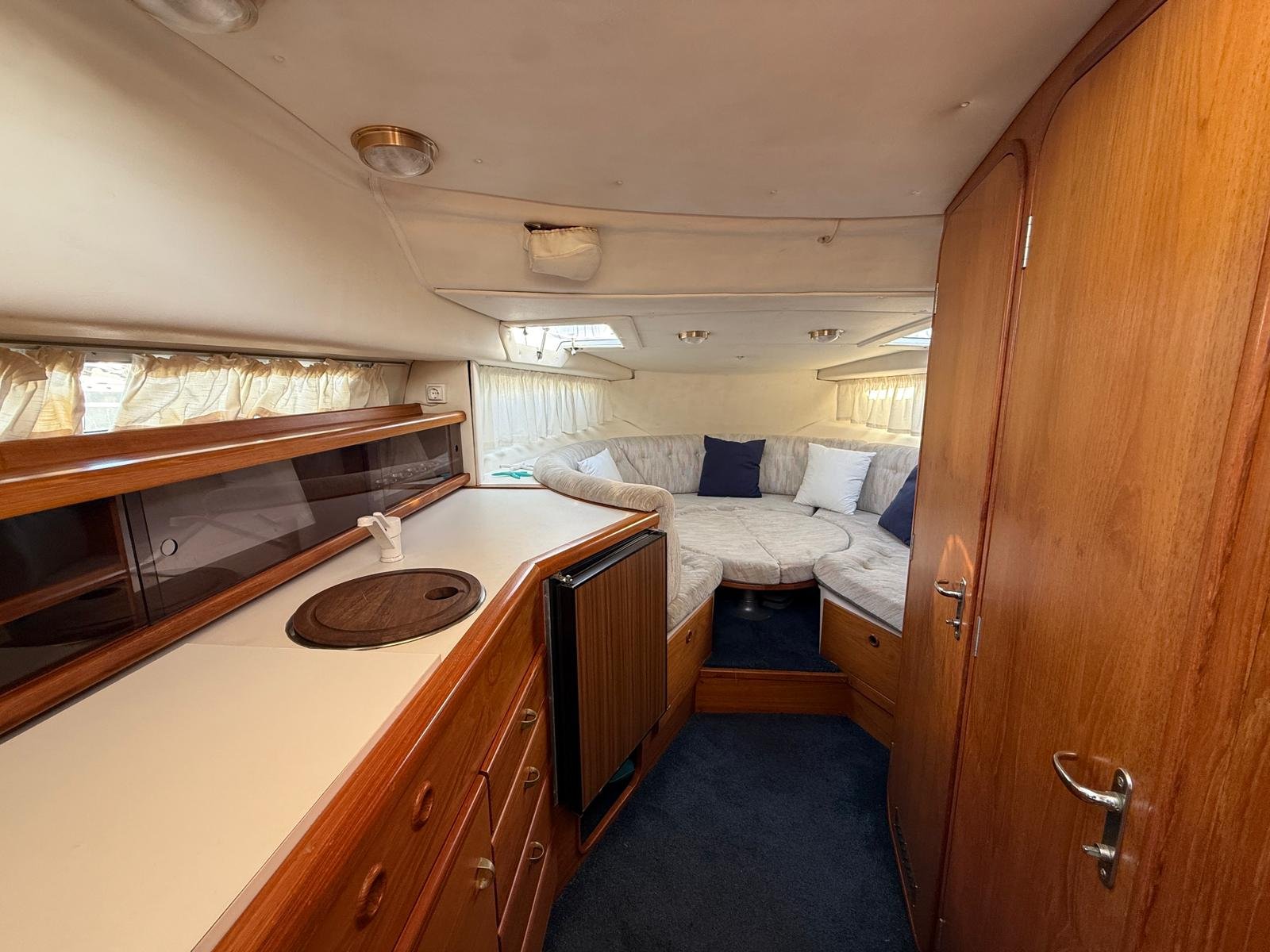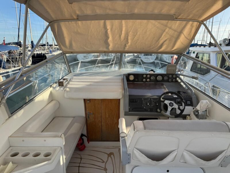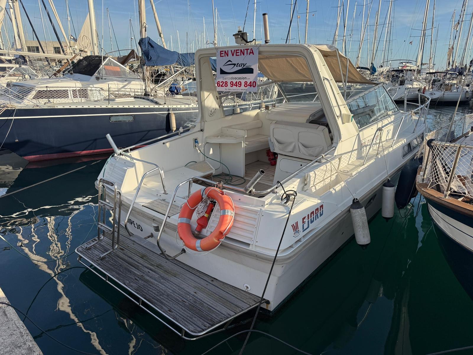 2 Cabinas 1 Baño con ducha, Salón convertible, Camarote en popa cama doble, Emisora VHF, GPS Plotter, Flaps, Luces subacuáticas, Conexión 220V, Equipo sonido nuevo 2022, Baterías nuevas 2021, Mandos Morse 2022, Molinete eléctrico, Lona de fondeo, Toldo Bimini, Toldo Camper, Plataforma de baño, Escalera de baño, Nevera eléctrica, Depósito gasoil 410 litros, Depósito agua dulce 150 litros.
