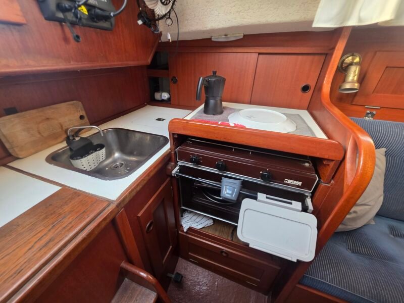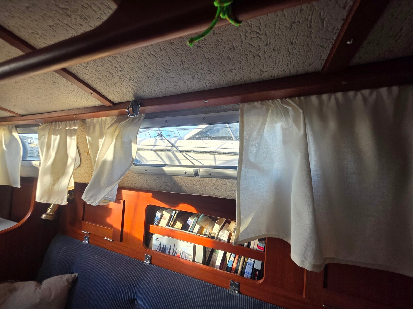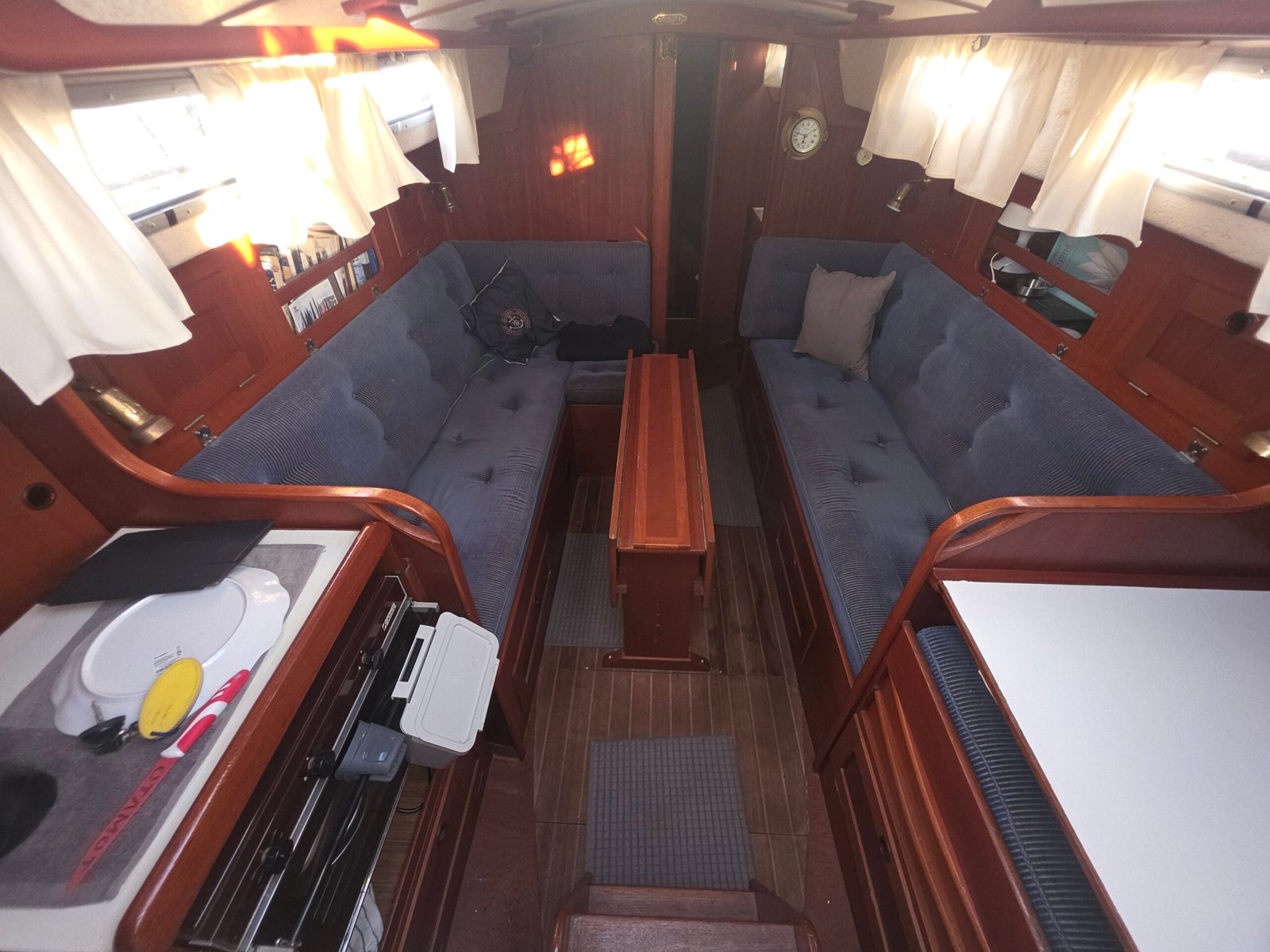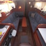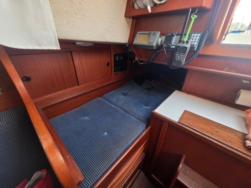 Su desplazamiento de aproximadamente 3.800 kg aporta una sensación de aplomo y confianza en el mar. El interior está diseñado para ofrecer comodidad y funcionalidad, con una distribución bien aprovechada que incluye varias plazas para dormir, un salón acogedor y una atmósfera cálida gracias a la carpintería clásica. Es una embarcación pensada para disfrutar de estancias prolongadas a bordo, ideal para parejas o pequeñas familias.