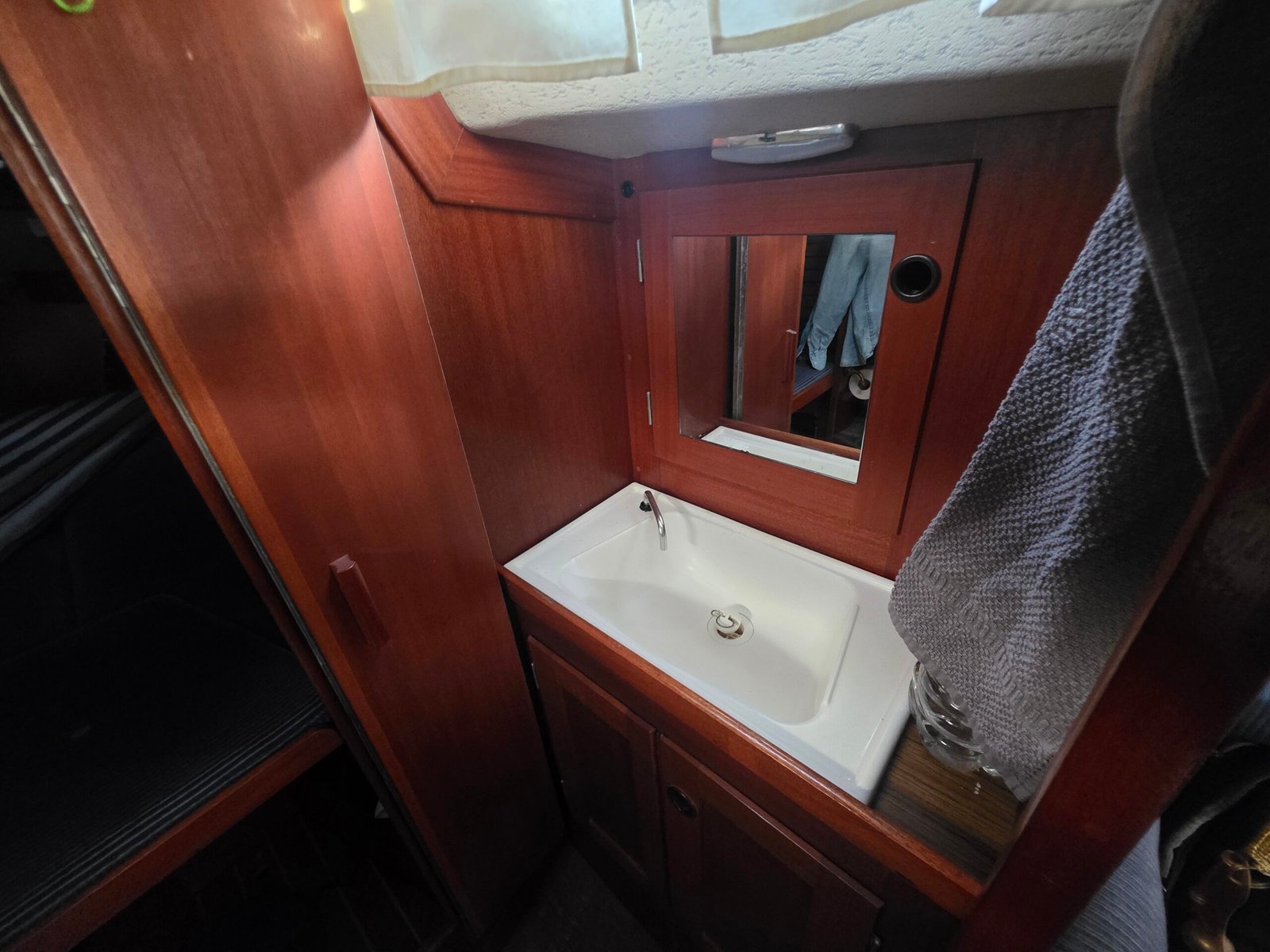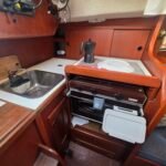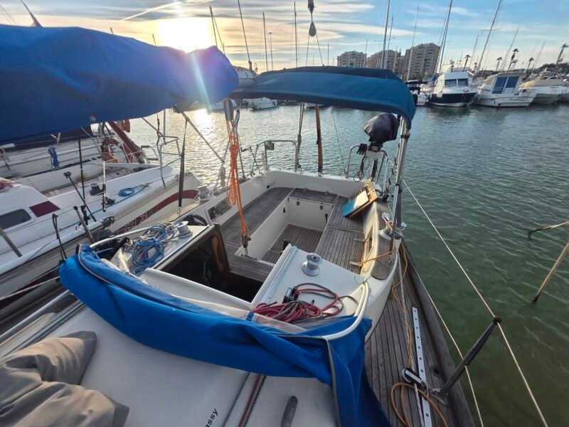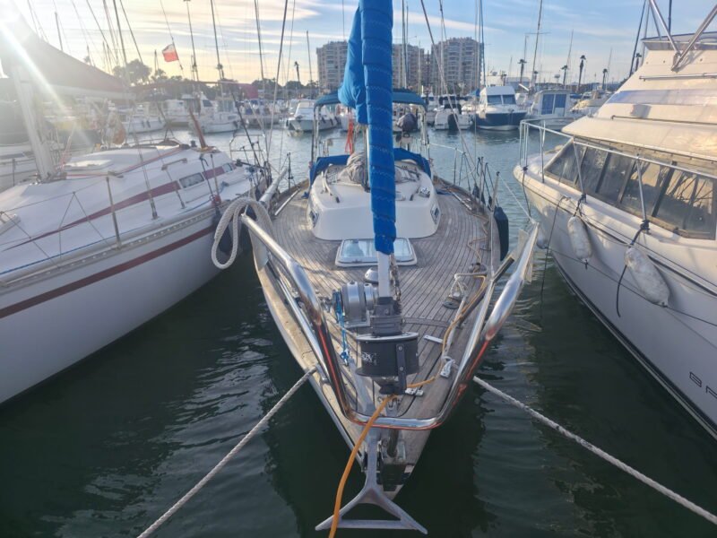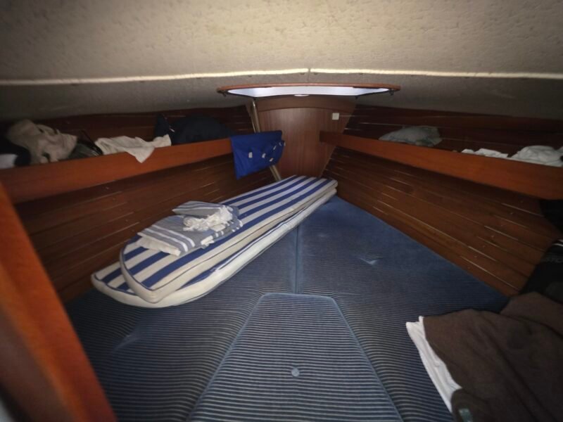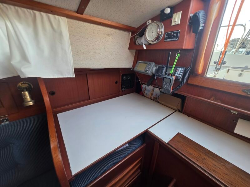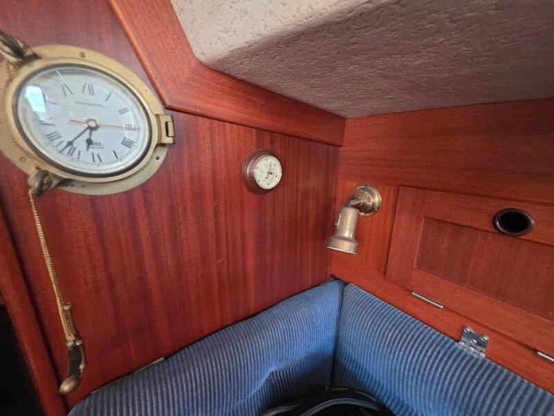 Su desplazamiento de aproximadamente 3.800 kg aporta una sensación de aplomo y confianza en el mar. El interior está diseñado para ofrecer comodidad y funcionalidad, con una distribución bien aprovechada que incluye varias plazas para dormir, un salón acogedor y una atmósfera cálida gracias a la carpintería clásica. Es una embarcación pensada para disfrutar de estancias prolongadas a bordo, ideal para parejas o pequeñas familias.