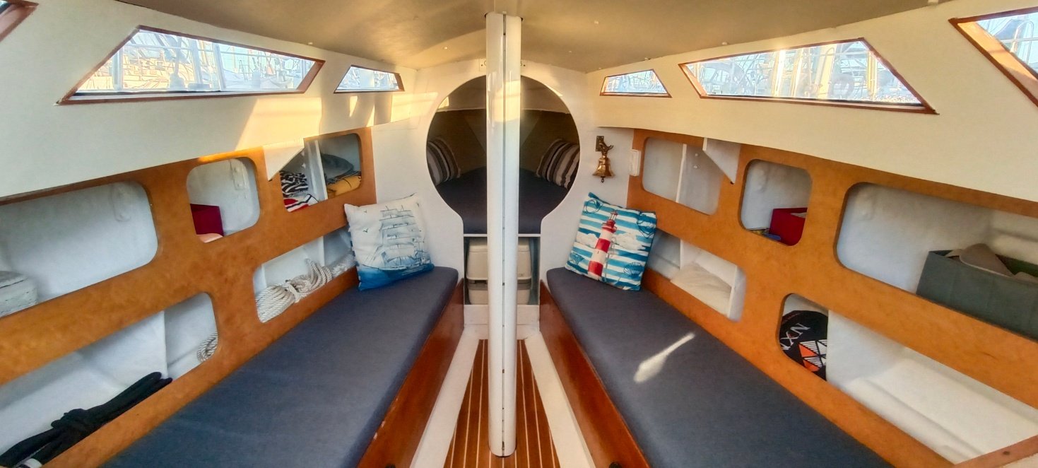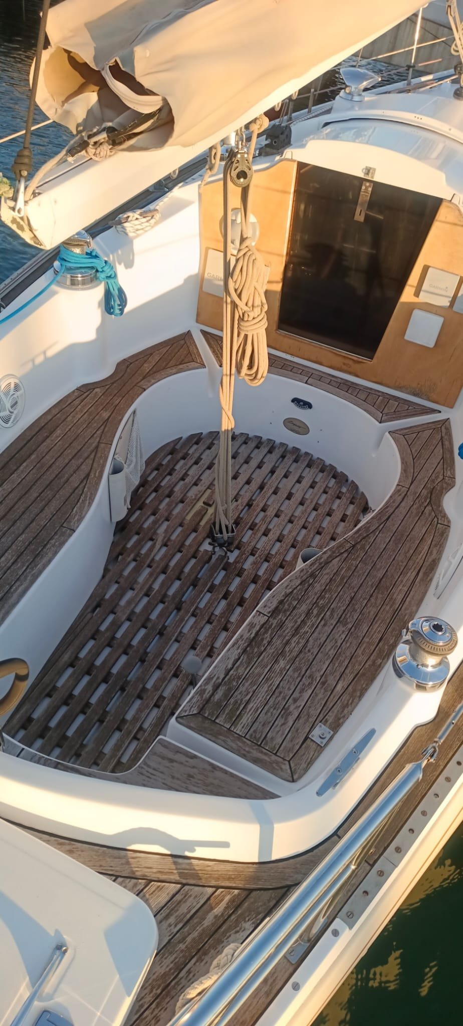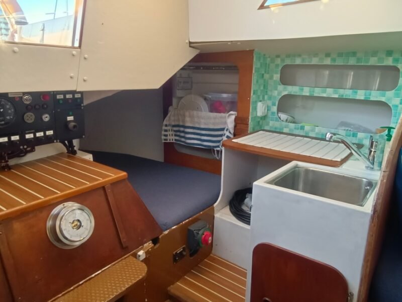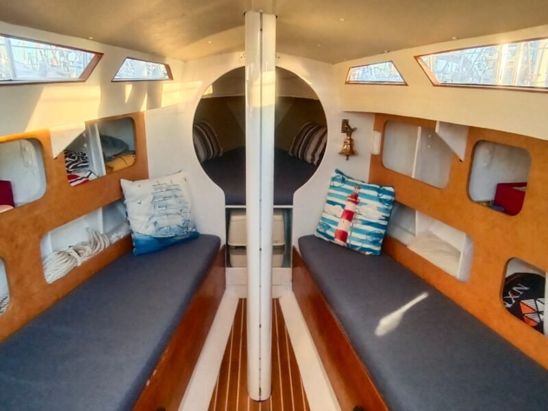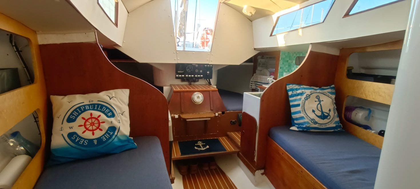 Alojamiento Categoría B6 Bandera Española Reserva de agua de 50 litros WC seco Luces interior LED Circuito 220V con enchufe de puerto Cargador de baterías 2 baterías Exide “Marine & Leisure” Dual AGM EP800 95AH 800W (1 de motor y 1 de servicio) Smartshunt BlueTooth Victron para el monitoring del consumo y carga de las baterías en tiempo real Estación meteo Barómetro Radio/CD Bluetooth Philips con altavoces estéreo en la cabina y en la bañera Enchufes USB Equipo mecánico Motor Sole Diesel Mini-17 cambiado en 2011 Hélice de 3 palas cambiada en 2022 Tanque de gasoil/diesel de 45 litros Equipamiento del casco y la cubierta Anemómetro Sonda de profundidad Sistemas de navegación Plotter Garmin GPS Map 922xsPantalla Garmin GNX20Pantalla Garmin GMI20VHF Sportnav SPO380MGAIS Garmin AIS-600 (receptor y transmisor) Piloto automático Raymarine con control remoto Radiobaliza satelital Cospas-Sarsat Kannad Safelink Sportpro+ (despachado para la zona 4) Equipamiento adicional Material de seguridad zona 4 completo y al día Despachado zona 4 hasta Octubre 2027 Último Antifouling hecho fin de Mayo 2025, válido para 2 años (3 capas)