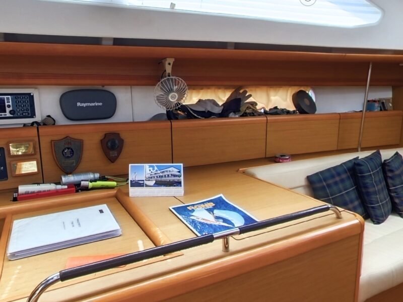 - Raymarine chartplotter in the cockpit.