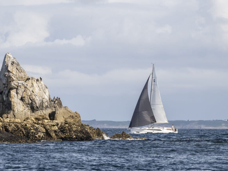 Para mantenerse manejable en tripulación reducida, todas las maniobras vuelven sobre los dos winches de popa. Solamente las drizas se mantienen concentradas alrededor de la cubierta. Una consola de rueda a estribor reúne todos los instrumentos, entre los cuales un ploter de 7 pulgadas.