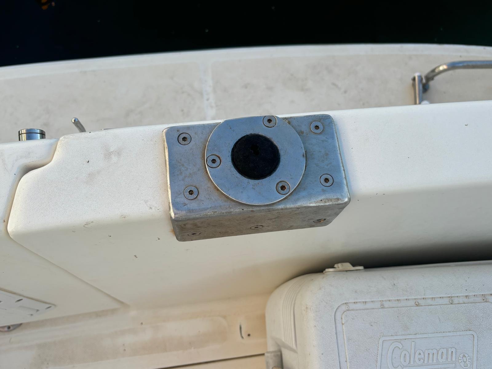 Soportes de cañas distribuidos alrededor de la embarcación