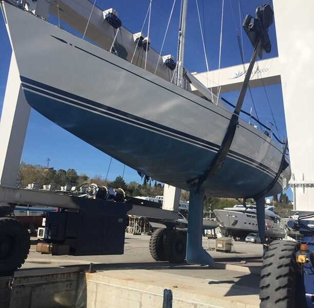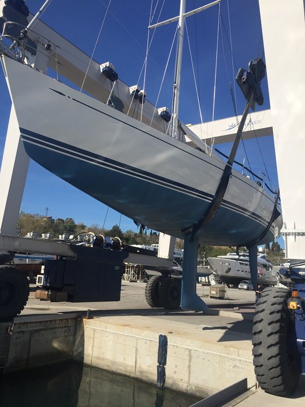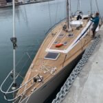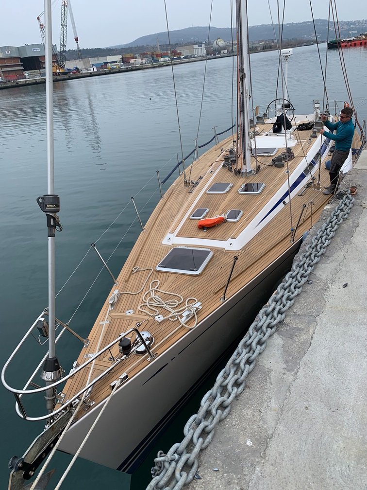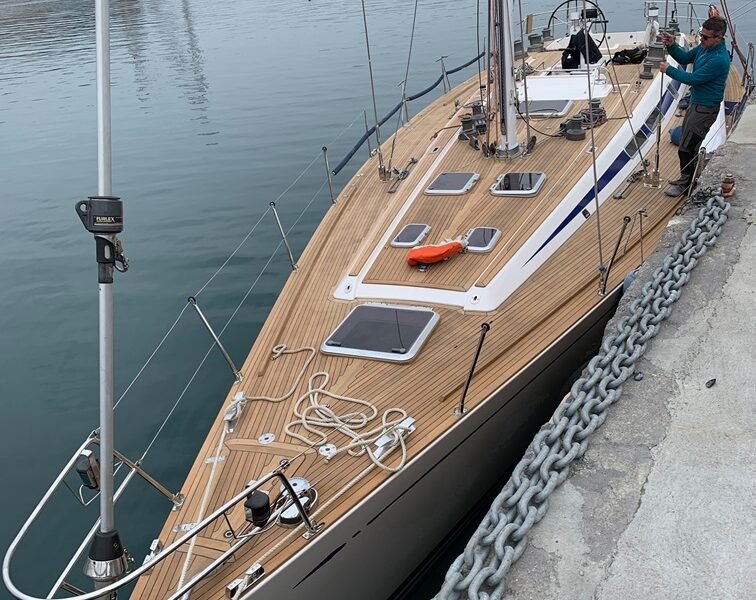 IN 2020 THE REFURBISHMENT OF THE TEAK DECK AND THE HATCHES, THE NEW ROD RIGGING AND THE WHITE PAINTING OF THE MAST AND BOOM, BOTH IN CARBON.