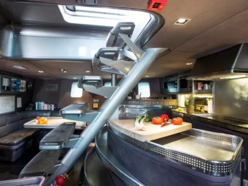 The yacht carries 17,000 liters of fuel on board, and 4,200 liters of water.
