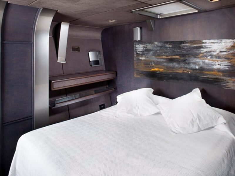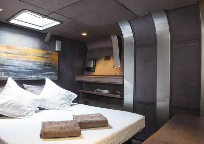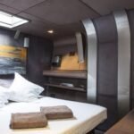 She can accommodate up to 8 guests in 4 staterooms, with 8 crew members waiting on their every need. She has a 9.07 m beam.