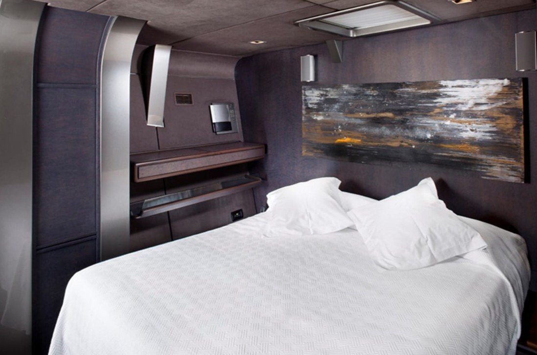 She can accommodate up to 8 guests in 4 staterooms, with 8 crew members waiting on their every need. She has a 9.07 m beam.
