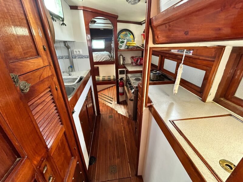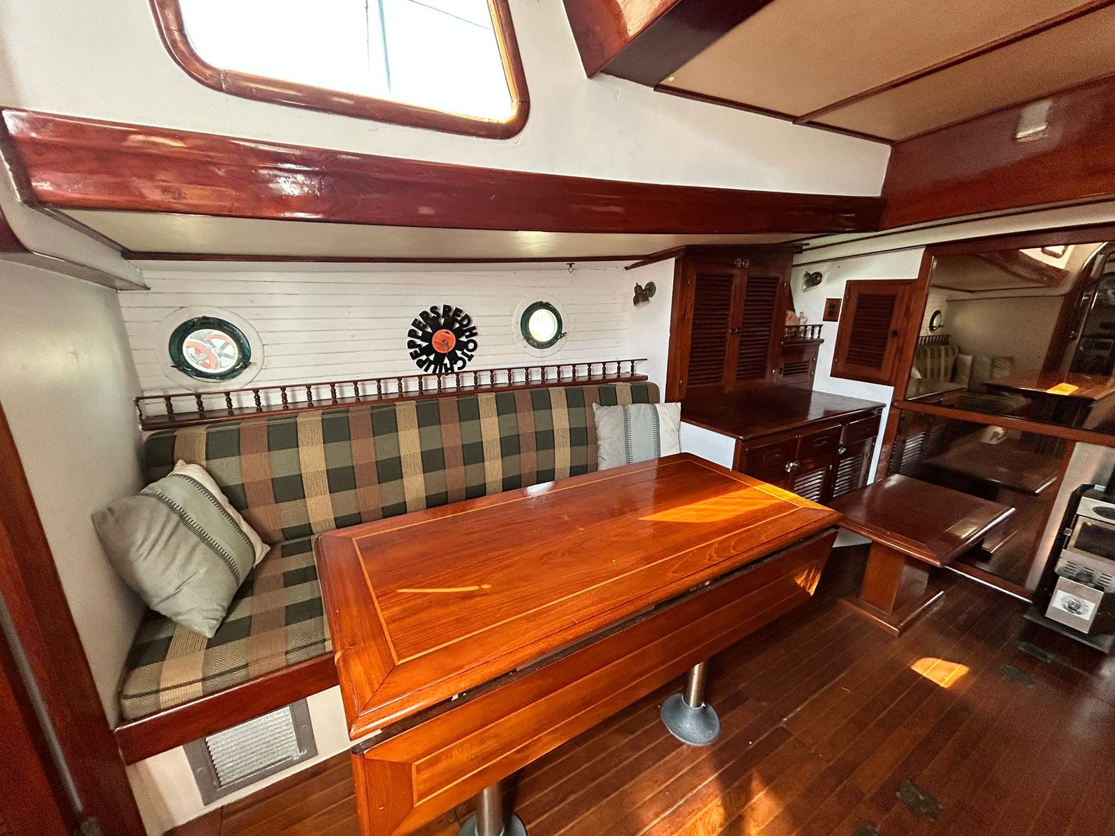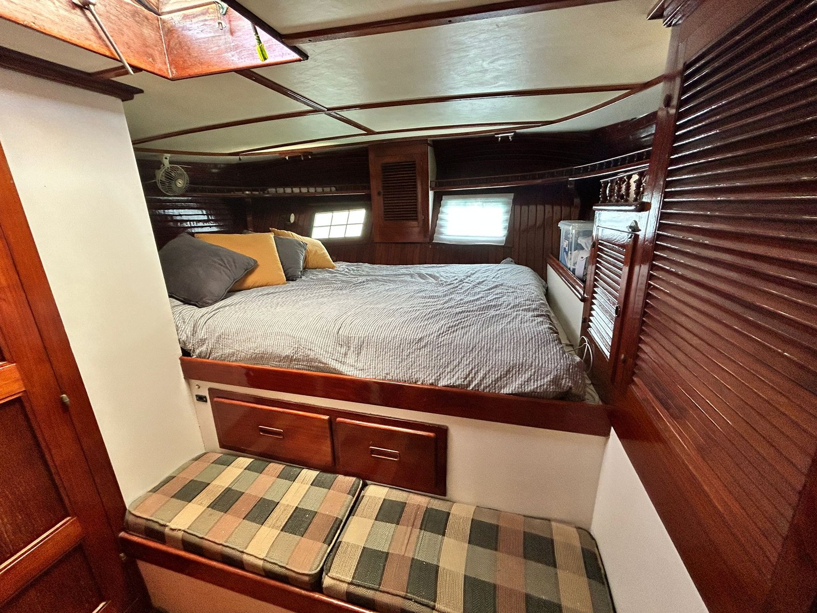 Descubra este excelente Vagabond 47 de ocasión, una embarcación construida en 1978 con eslora de 14,40 m y manga de 4,09 m, desplazamiento de 18.000 kg. Equipada con un motor intraborda Ford Lehman de 80 HP con 4.722 horas, ofrece una velocidad de crucero aproximada de 6,5 nudos. Su tanque de combustible tiene una capacidad de 700 litros y el de agua dulce de 680 litros. En su interior dispone de 3 camarotes y 2 baños, con capacidad para hasta 12 personas. El equipamiento incluye agua caliente (motor), bomba de achique 12 V y manual, cargador de baterías, chart-plotter, GPS, piloto automático, radar, sonda de profundidad, molinete de ancla, pescantes para auxiliar, bimini, escalera de baño, mesa en bañera y cojines, además de cocina a gas/álcool, horno de gas, toma de 220 V, placas solares, emisora VHF y sistema de viento. Ideal para navegación costera o travesías y con amplios tanques para autonomía. Una oportunidad para quienes buscan robustez, comodidad y equipamiento completo en una eslora de casi 15 metros. Aproveche esta oferta y solicite más información para concertar visita o ver documentación.