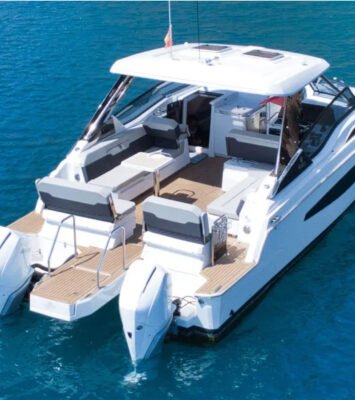 Espectacular Aquila 32 S, un catamarán a motor que combina a la perfección rendimiento, estabilidad y confort, con un...