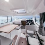 Esta unidad monta motor Suzuki 200 CV electrónico, ofreciendo una navegación muy equilibrada entre consumo, prestaciones y fiabilidad. Gracias al propulsor de proa, las maniobras en puerto resultan especialmente sencillas incluso navegando en solitario.