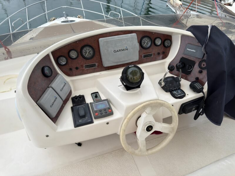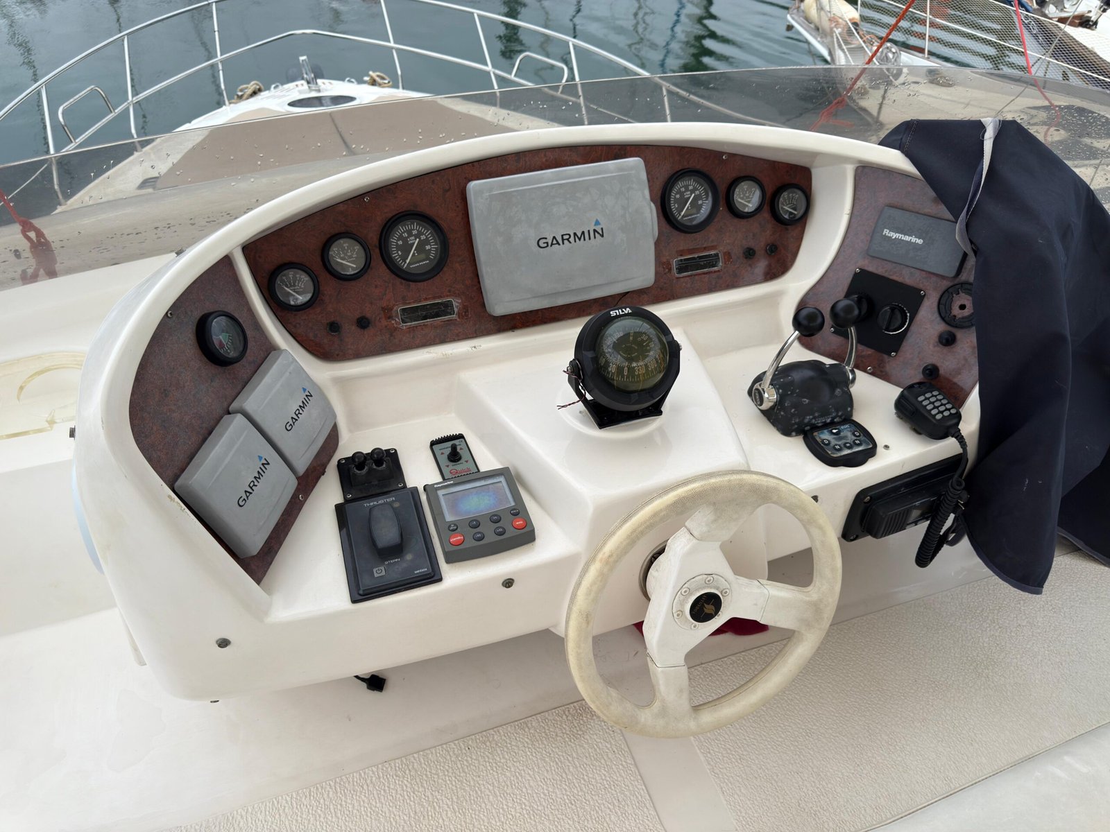 2 Cabinas 2 Baños, WC eléctricos 2x GPS Plotter Garmin 2x Sonda Corredera Garmin Piloto automático Raymarine 2x VHF Garmin Mandos electrónicos Radar Garmin Conexión 220V Cargador de baterías Generador Hélice de proa Cocina Vitrocerámica Horno Microondas Nevera eléctrica Agua caliente TV LG Plataforma de baño Pasarela hidráulica Toldo Bimini Audio FUSION nuevo 2024 Lista 7ª Uso privado