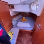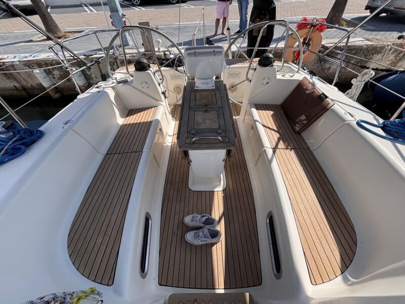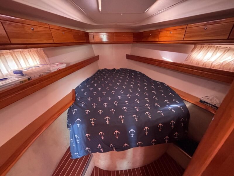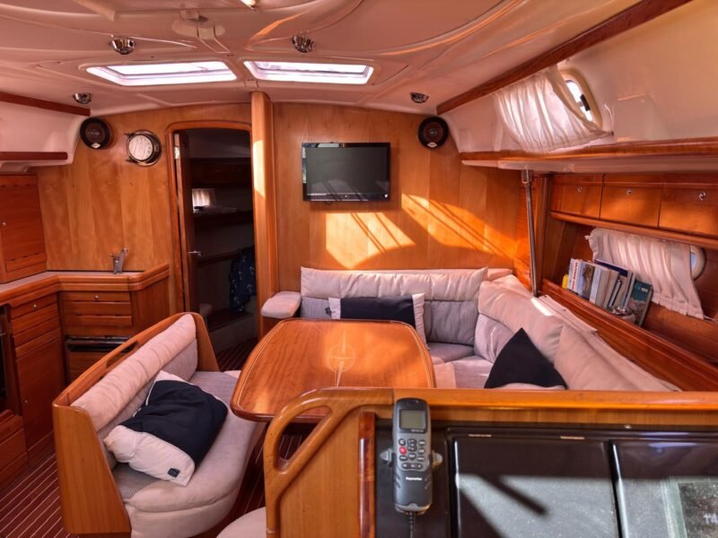 3 Cabinas 2 Baños Salón convertible cama doble Electrónica Raymarine Piloto automático ST6002 GPS Plotter E80, Hélice proa 2023 Radar Furuno, anemómetro VHF Ray 240E, tridata, veleta Equipo de Audio3x Baterías + Cargador Bomba sentina manual y eléctrica Toma tierra, Circuito 12V Aire Acondicionado nuevo 2023 2x Nevera eléctrica, Agua caliente Cocina gas  y vajilla Mesa teca plegable en bañera Ducha exterior, escalera de baño Molinete eléctrico, ancla y cadena Toldo Bimini, Capota rociones Teca nueva 2025 Reflector de radar, Radiobaliza Fundas varias, defensas.