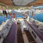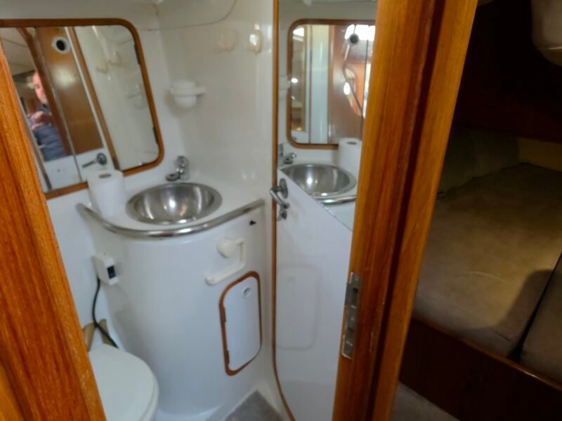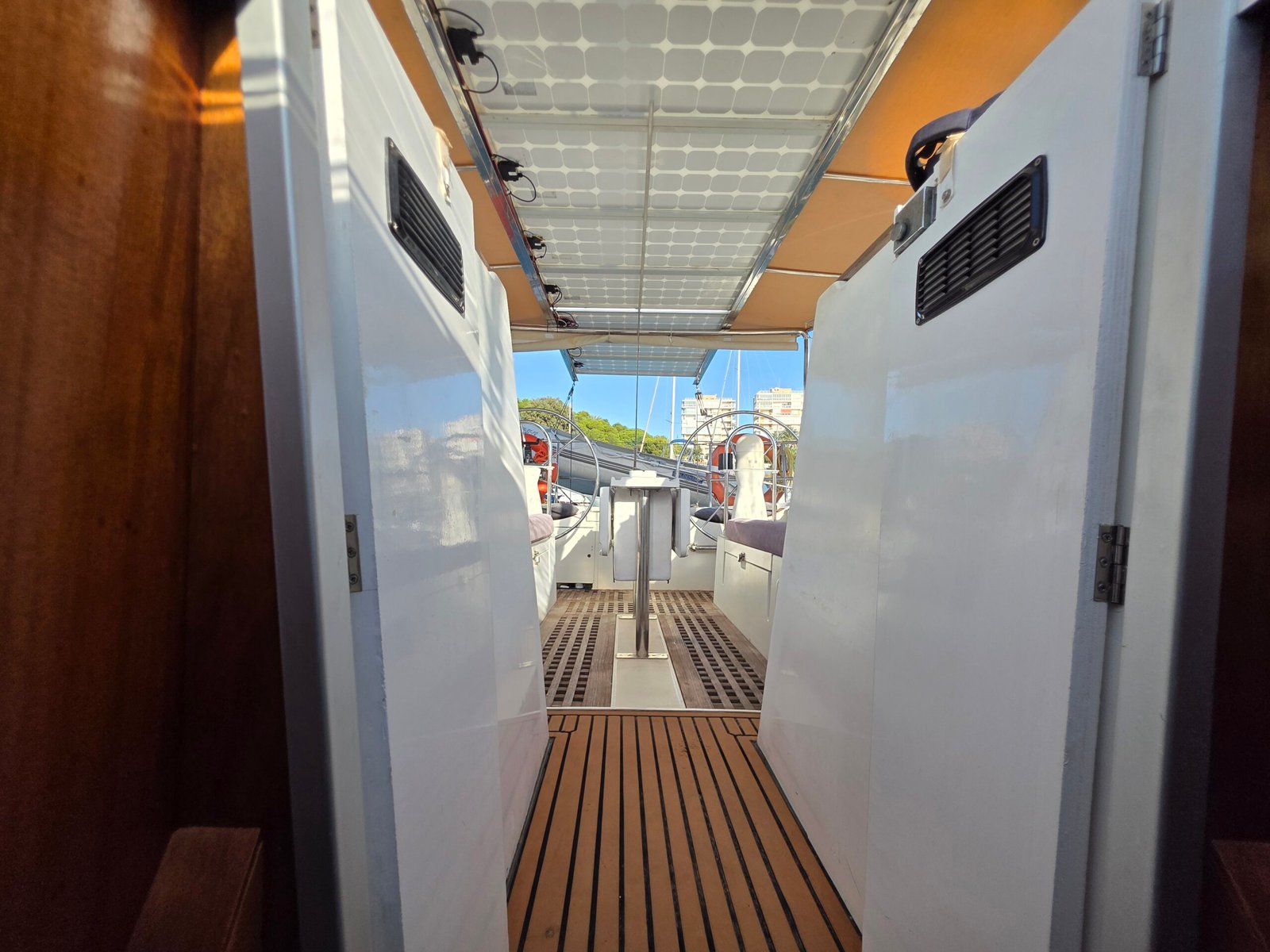 La cocina está diseñada para una navegación práctica y funcional, con espacio suficiente para almacenamiento y preparación de comidas a bordo. En cubierta, la bañera es amplia y segura, facilitando tanto la navegación como las maniobras, mientras que el acceso a proa es cómodo y despejado.