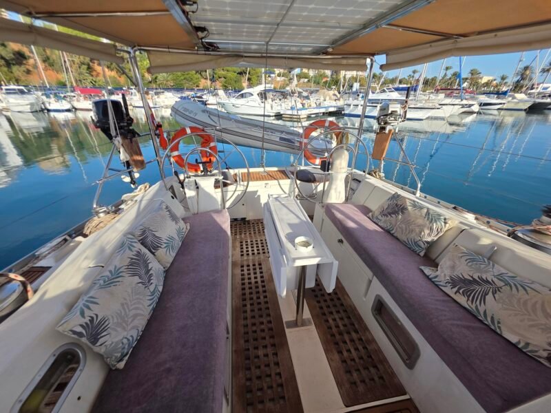 Su casco robusto de fibra de vidrio, junto con una quilla pensada para ofrecer buen rendimiento y estabilidad, convierten a este velero en una opción fiable y marinera. El motor intraborda diésel garantiza maniobras seguras en puerto y autonomía en navegación sin viento.