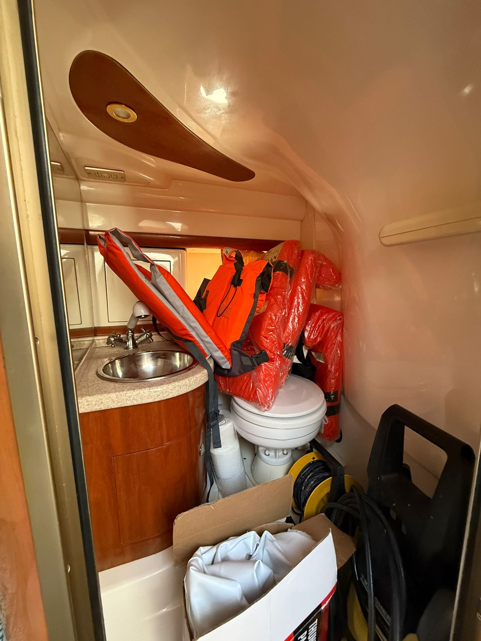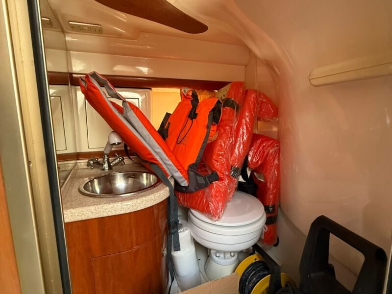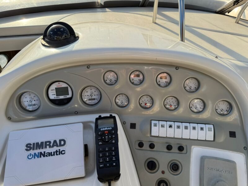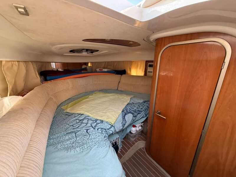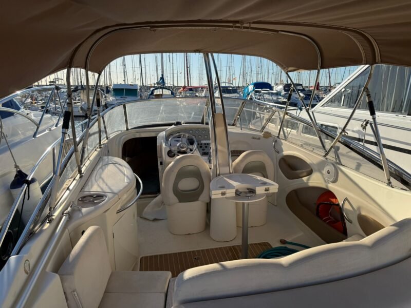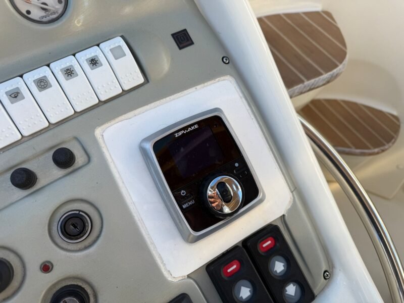 1 Cabina 1 Baño, WC eléctrico, GPS Plotter Simrad nuevo, Emisora VHF Simrad nueva, Equipo Audio Fusion Bluetooth, 4 Altavoces exteriores, Conexión 220V, Cargador de baterías 220V, Nevera eléctrica Isotherm, Cocina eléctrica, Luces de navegación, Bocina nueva 2025, Solárium proa y popa, Ducha exterior, Faro pirata, Toldo Bimini largo, Bichero, Material de seguridad, Escalera de baño, Flaps Zipwake nuevos, Homologado para 8 plazas, Revisión motores y colas 2025, Antifouling julio 2025. Excelente estado.