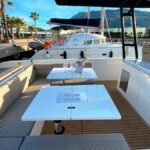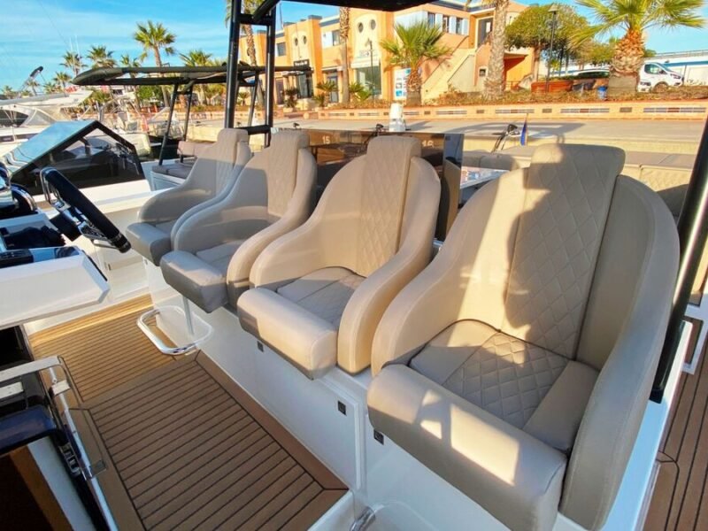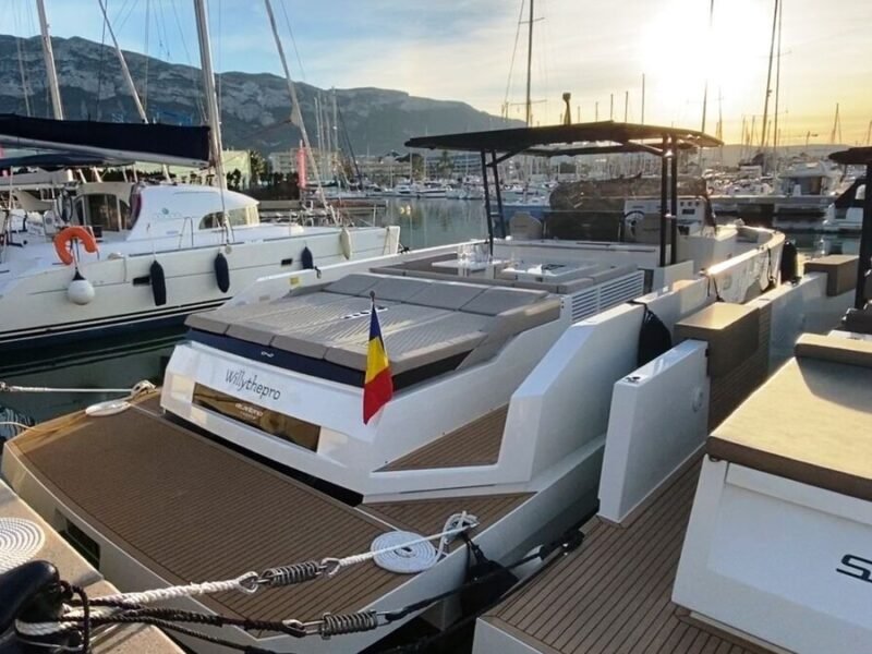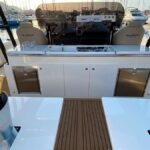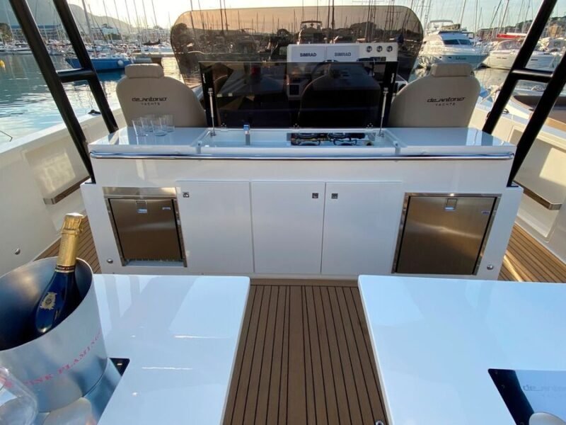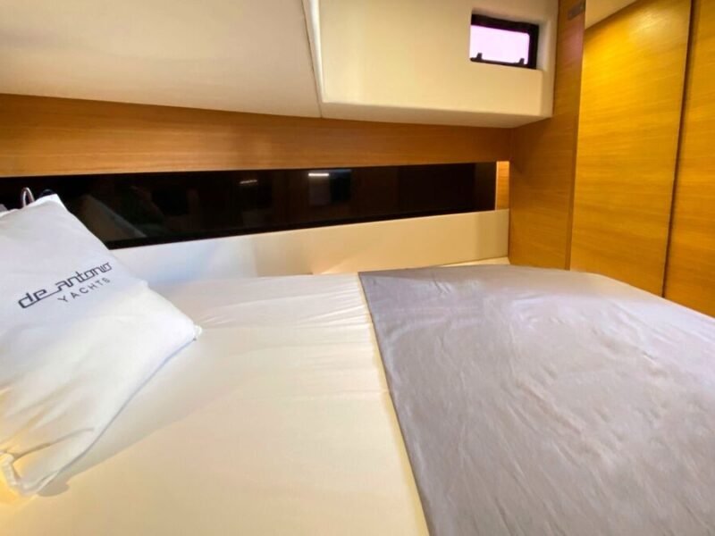El De Antonio Yachts D42 es uno de los modelos más sofisticados y versátiles de su categoría. Este barco de 12-metros combina diseño moderno, gran habitabilidad y excelentes prestaciones, ideal tanto para día de paseo como para escapadas de fin de semana o incluso explotación en chárter. Diseño walk-around con pasillos amplios que permiten desplazarse con seguridad de proa a popa. Motores fueraborda ocultos bajo la plataforma de popa, lo que mejora la estética, facilita el mantenimiento y optimiza el espacio interior. Tres zonas de solárium: en proa, central y popa. En proa para disfrutar de la brisa y el sol, en popa una zona amplia que muchas veces incorpora plataforma de baño. Cocina exterior totalmente equipado; ideal para compartir comidas a bordo. Interior con al menos una cabina doble privada, salón versátil y un baño completo con ducha independiente. Amplio espacio de almacenamiento; de garaje central para un tender. Excelente distribución: zonas exteriores generosas (soláriums, cocinas exteriores, áreas de estar), un gran confort al aire libre. Diseño moderno y elegante, con acabados de alta calidad (tapicerías Premium, detalles en carbono, iluminación LED, etc.) que le dan un toque de lujo sin estridencias.