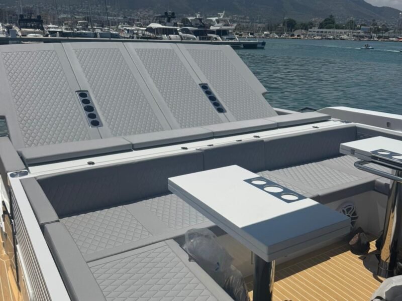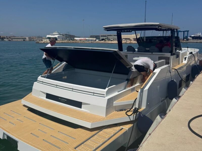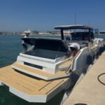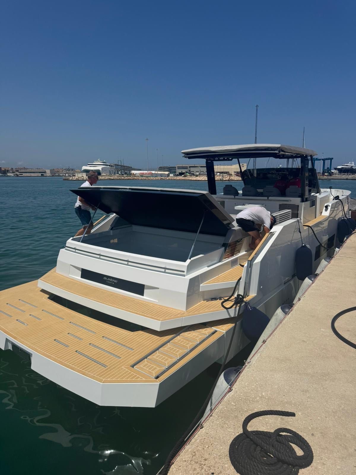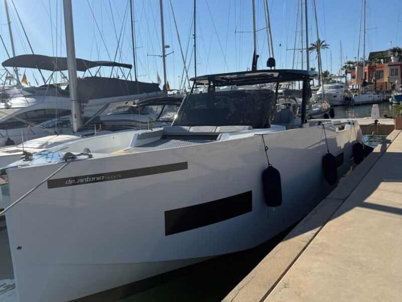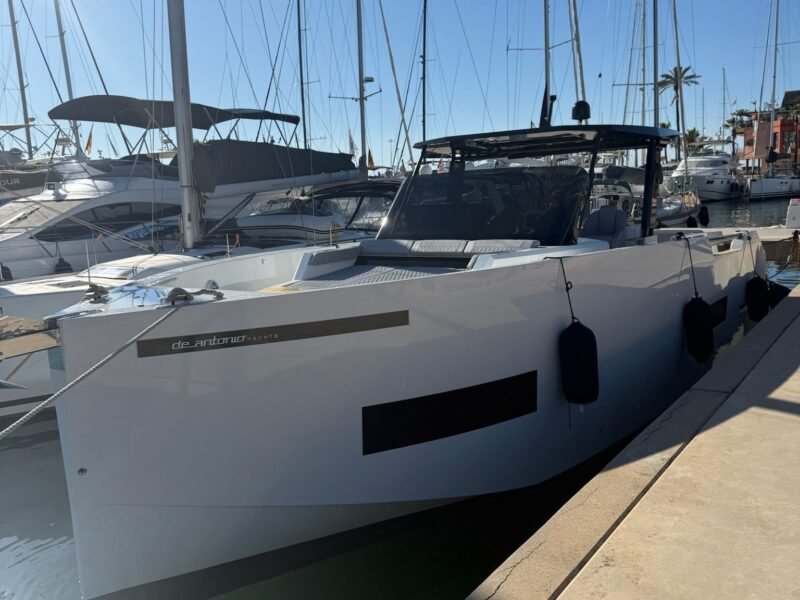 El D50 Open es un yate de lujo deportivo de 15 metros de eslora fabricado por la marca española De Antonio Yachts.Es un modelo de alta gama que combina diseño innovador, tecnología avanzada y gran confort a bordo.Diseño “walk-around”: permite moverse libremente por cubierta, con amplias zonas para tomar el sol y socializar.Motorización fueraborda oculta: uno de los sellos de la marca, ya que integra los motores bajo una cubierta estilizada, mejorando estética y espacio útil.Lujo y practicidad: ofrece camarotes interiores, baño completo y salón, pensado tanto para salidas de día como para travesías más largas. Velocidad y rendimiento: puede superar fácilmente los 50 nudos, con gran estabilidad y eficiencia.