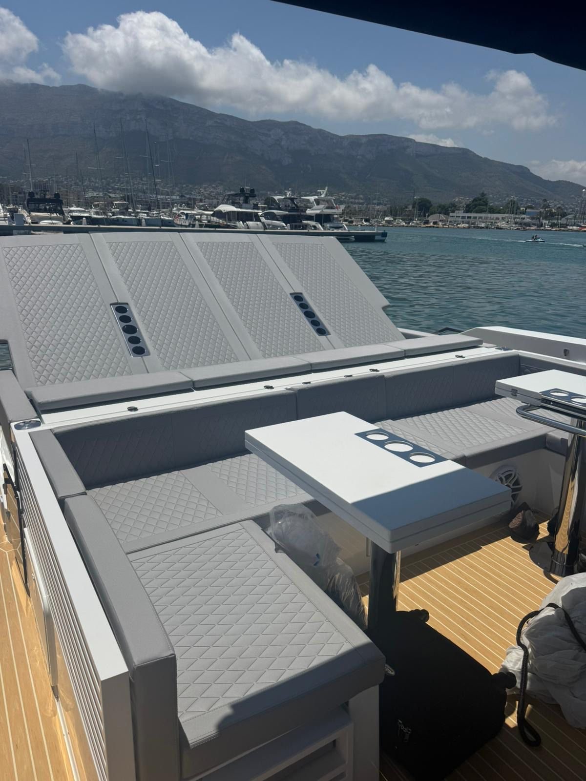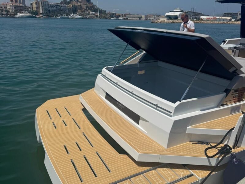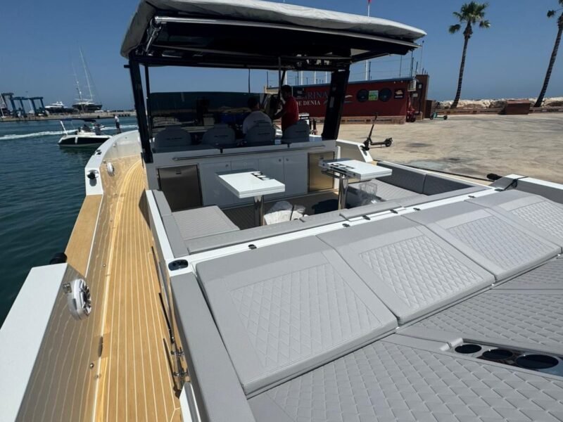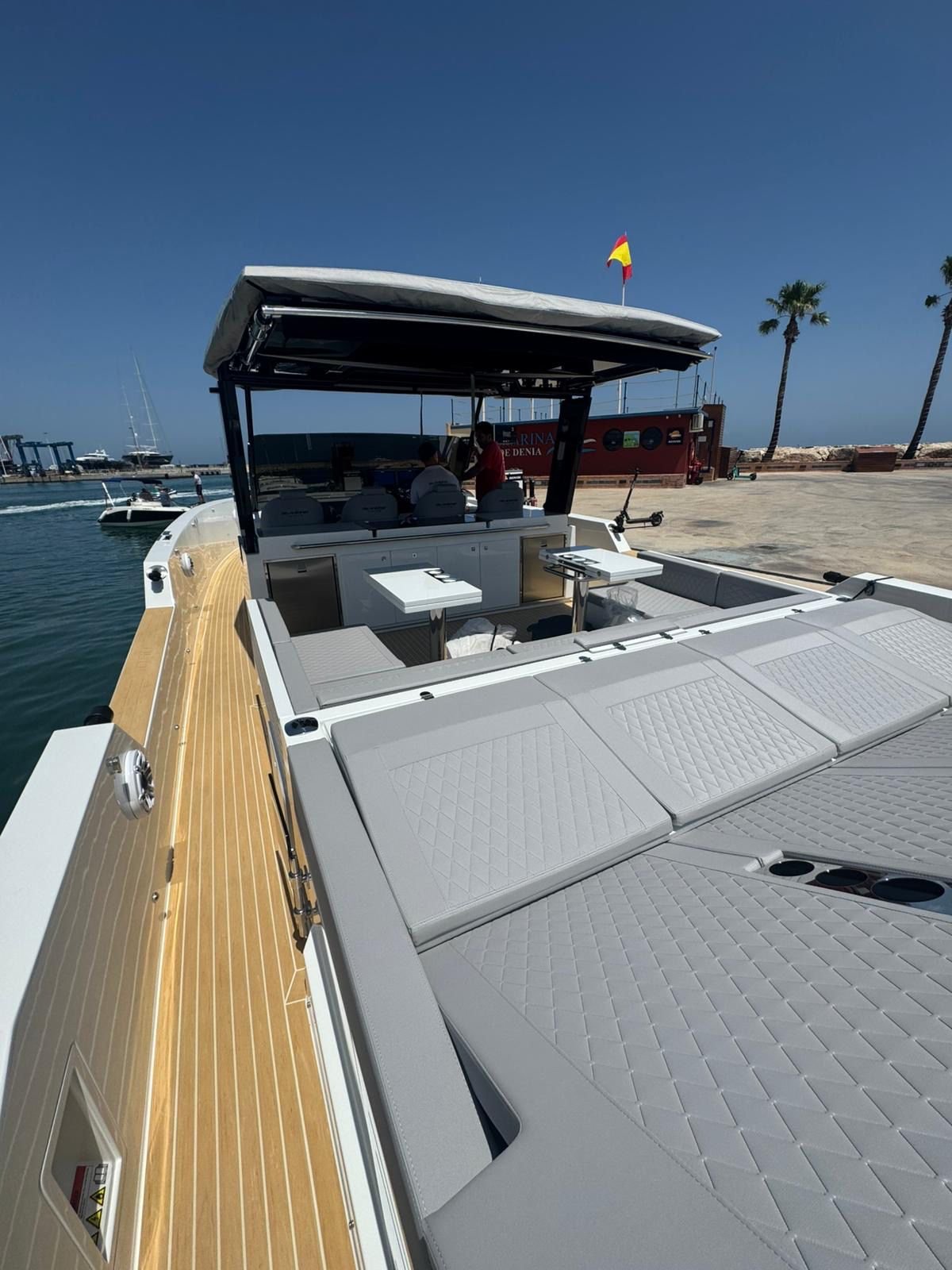 El D50 Open es un yate de lujo deportivo de 15 metros de eslora fabricado por la marca española De Antonio Yachts.Es un modelo de alta gama que combina diseño innovador, tecnología avanzada y gran confort a bordo.Diseño “walk-around”: permite moverse libremente por cubierta, con amplias zonas para tomar el sol y socializar.Motorización fueraborda oculta: uno de los sellos de la marca, ya que integra los motores bajo una cubierta estilizada, mejorando estética y espacio útil.Lujo y practicidad: ofrece camarotes interiores, baño completo y salón, pensado tanto para salidas de día como para travesías más largas. Velocidad y rendimiento: puede superar fácilmente los 50 nudos, con gran estabilidad y eficiencia.