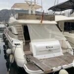 7. Plataforma de baño: en la parte trasera del yate se encuentra una plataforma de baño integrada, que permite un fácil acceso al agua para nadar o practicar deportes acuáticos. También cuenta con una escalera plegable para facilitar la entrada y salida del agua.