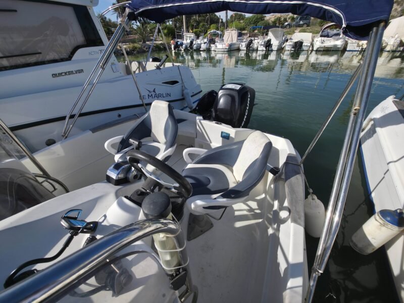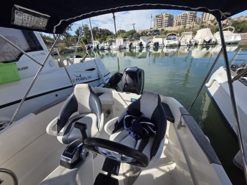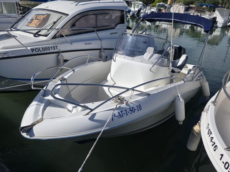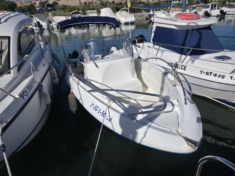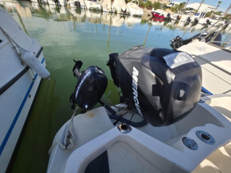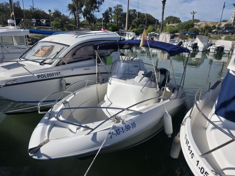 Descubre esta magnífica Quicksilver 555 de ocasión, año 2010, con eslora de 5,35 m y manga de 2,21 m. Diseñada para disfrutar del mar en familia o con amigos, ofrece dos literas, un camarote, baño y capacidad para seis personas, lo que la convierte en una propuesta muy versátil para salidas de día o escapadas costeras. Está equipada con dos motores fueraborda Mercury (modelo EFI 115 HP más otro de apoyo 5 HP), con tan solo 210 horas de uso, lo que garantiza un motor aún en plena salud. Cuenta con depósito de combustible de 80 l y agua dulce de 50 l, permitiendo confort y autonomía en las travesías. Entre sus extras destacan bimini, bomba de achique manual y eléctrica (12 V), ducha en bañera, escalera de baño, plataforma, mesa en bañera, emisora VHF, GPS, sonda de profundidad y sonda de pesca. Esta embarcación está lista para zarpar, cuidada con mimo, y representa una excelente oportunidad para quien busca una lancha abierta de calidad, fiable y bien equipada. No incluye precio en este anuncio; solicite más información y descubra por qué esta Quicksilver 555 es la elección acertada para su próximo barco.