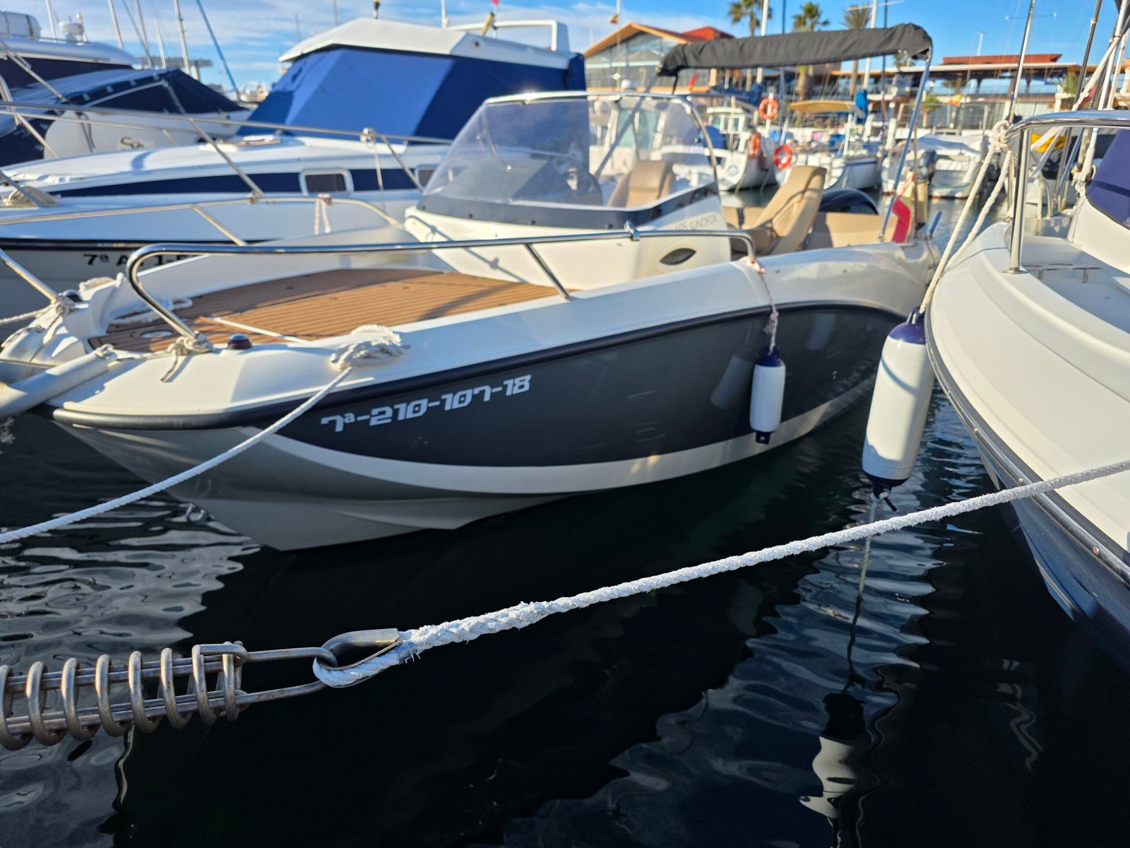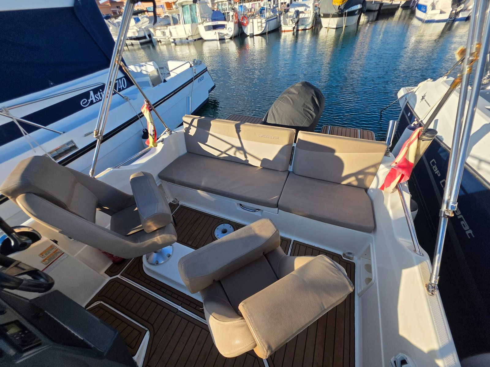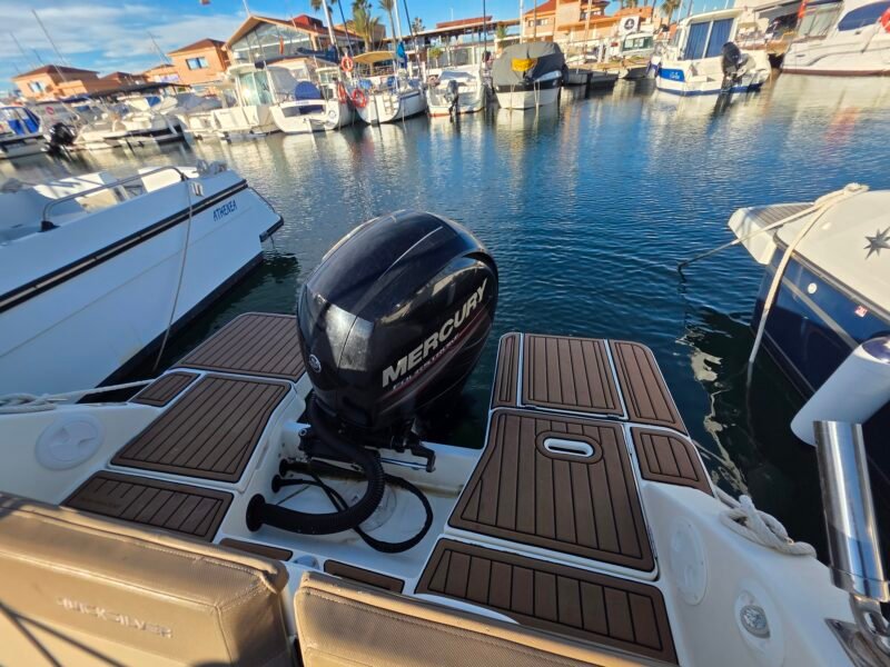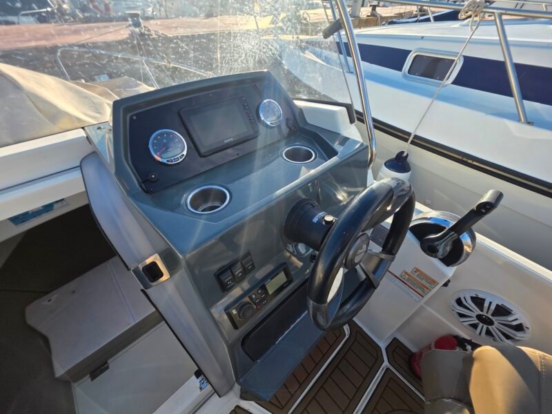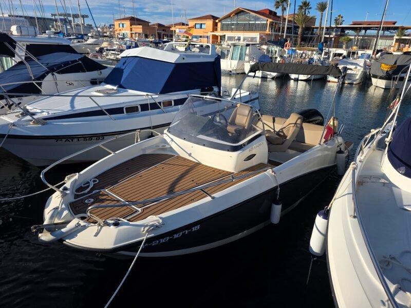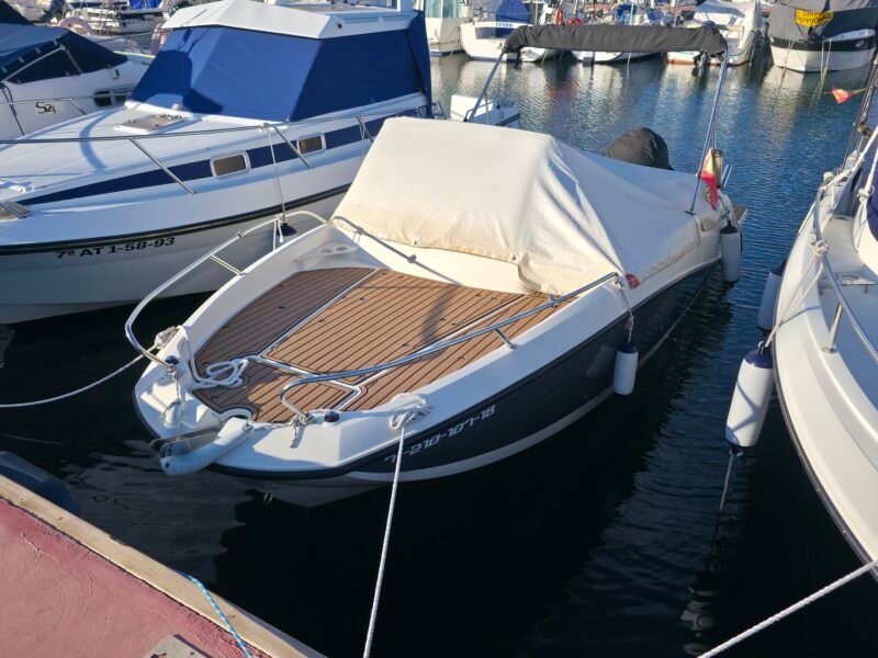 El QuickSilver 605 Activ SunDeck es una embarcación a motor diseñada para ofrecer una experiencia náutica cómoda, segura y funcional, ideal para disfrutar del mar con familia o amigos. Su diseño exterior se caracteriza por un amplio solárium en proa, perfecto para relajarse y tomar el sol, además de una zona de asientos bien distribuida que favorece la comodidad a bordo. Está homologado para hasta 7 personas, lo que lo convierte en una excelente opción para salidas recreativas, paseos costeros o jornadas completas de ocio en el agua. En el interior dispone de una cabina con dos literas, proporcionando un espacio práctico para descanso, almacenamiento o pernocta ocasional. Su casco ofrece una navegación estable y suave, aportando seguridad incluso con mar moderada. Con una eslora de 5,75 metros, manga de 2,40 metros y calado reducido, destaca por su fácil maniobrabilidad tanto en navegación como en puerto o durante el fondeo. Puede equiparse con un motor fuera borda de hasta 150 CV, logrando un equilibrio óptimo entre rendimiento, eficiencia y control. Cuenta además con múltiples espacios de estiba, escalera de baño y acabados cuidados que refuerzan su carácter práctico y moderno. El QuickSilver 605 Activ SunDeck es una embarcación polivalente, pensada para quienes buscan versatilidad, confort y disfrute del mar en cada salida.