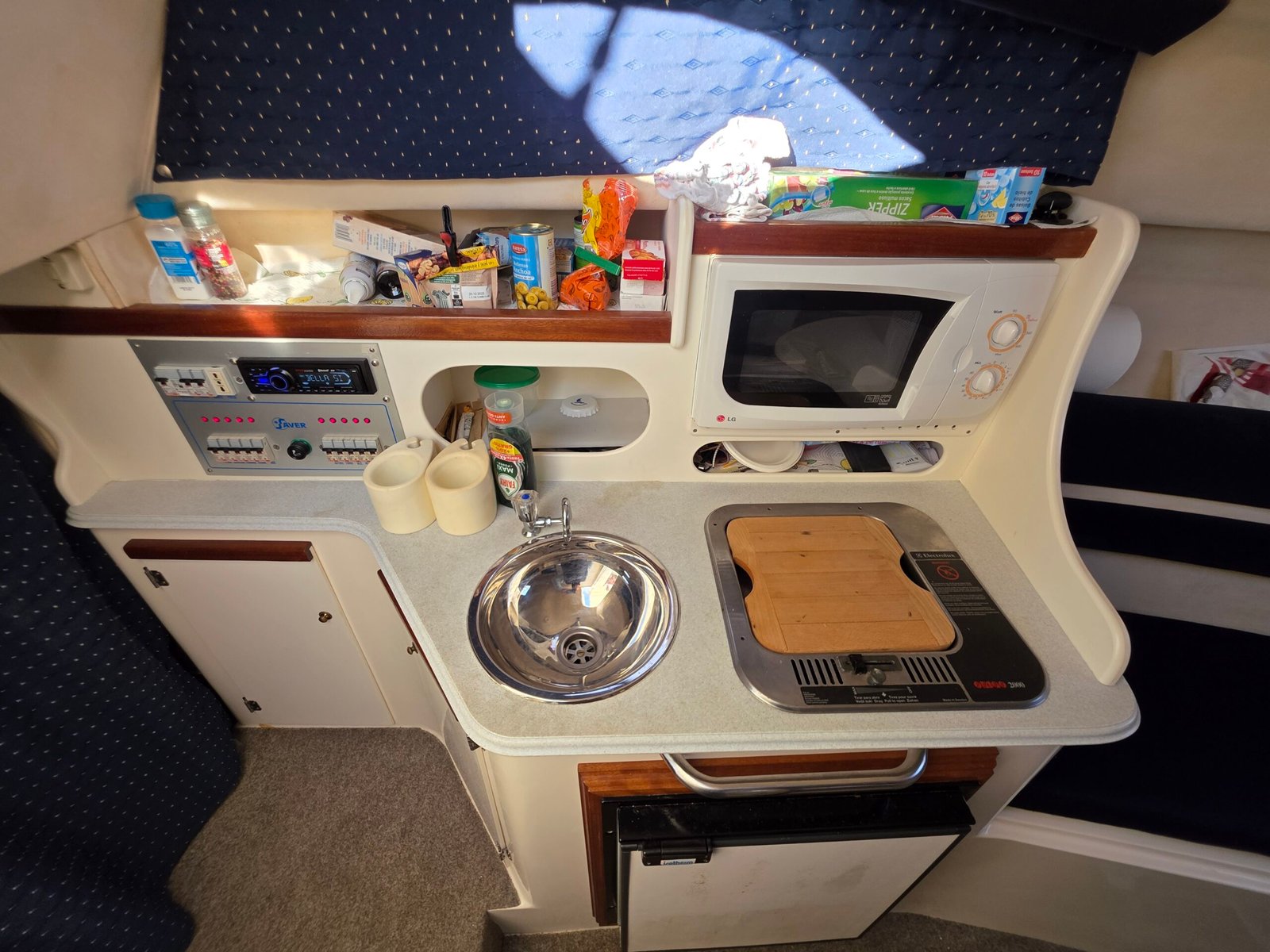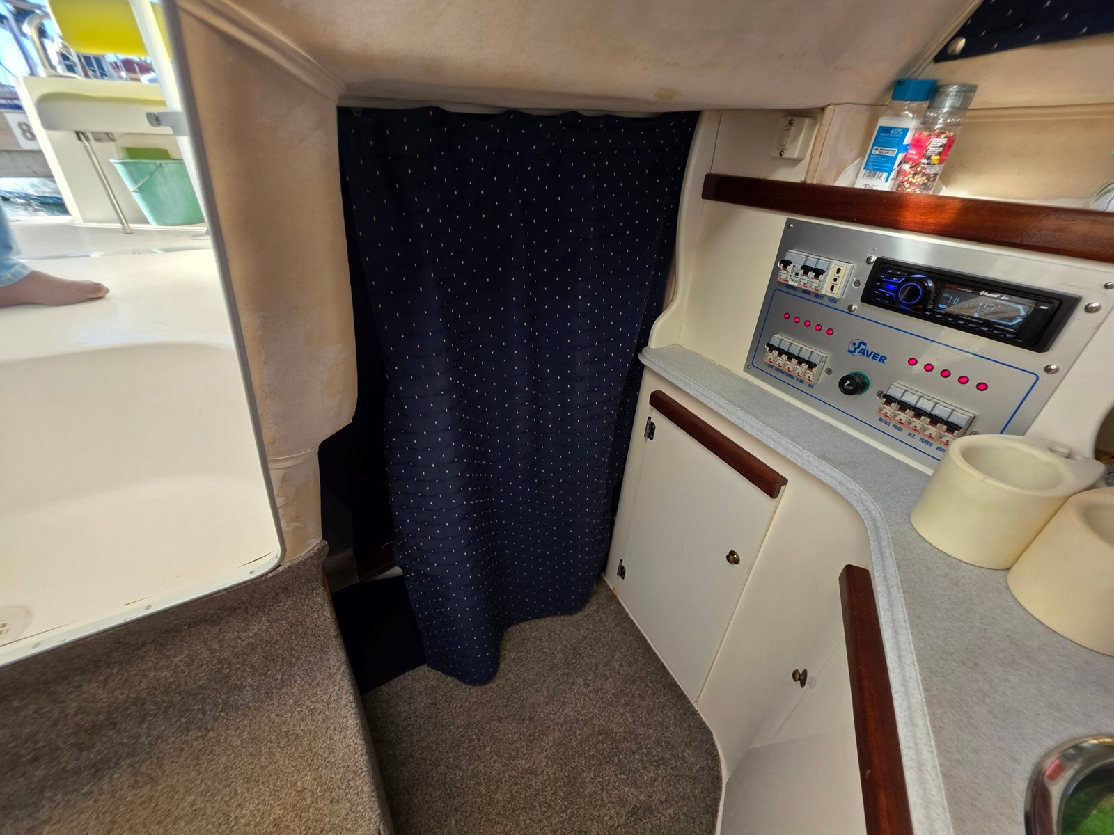 Dispone de una cabina acogedora con literas, ofreciendo un espacio interior práctico para descanso, almacenaje y resguardo. Su motorización proporciona una navegación estable, eficiente y segura, adecuada tanto para navegantes con experiencia como para quienes buscan iniciarse en la navegación de recreo. En cubierta, el Saver Riviera 24 ofrece zonas amplias para relajarse, tomar el sol o compartir momentos en compañía, con una bañera funcional y cómoda.