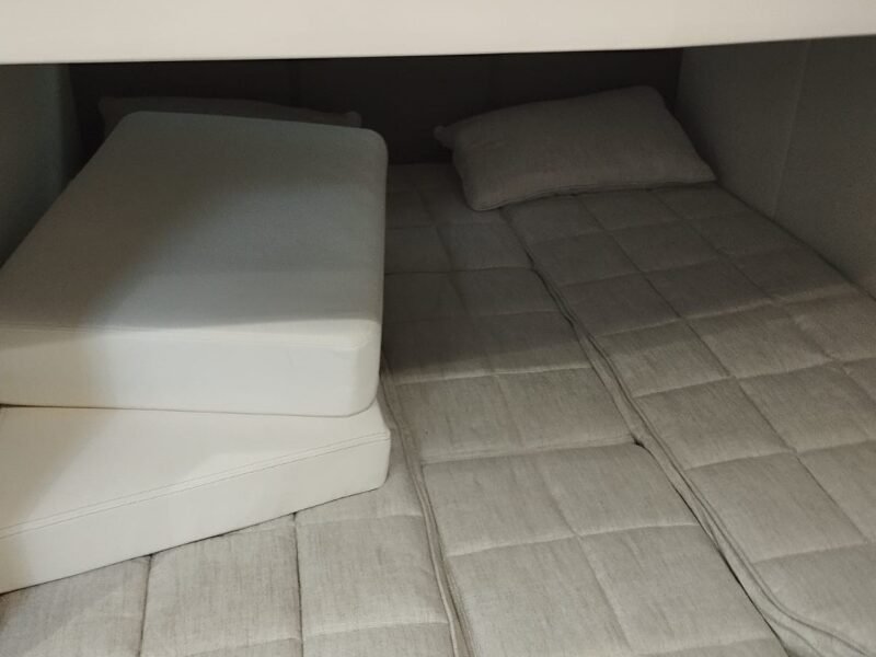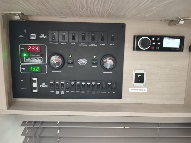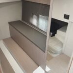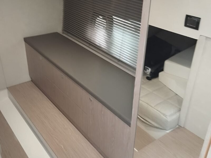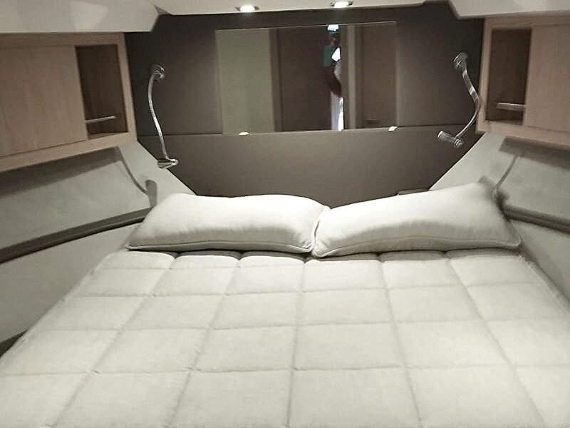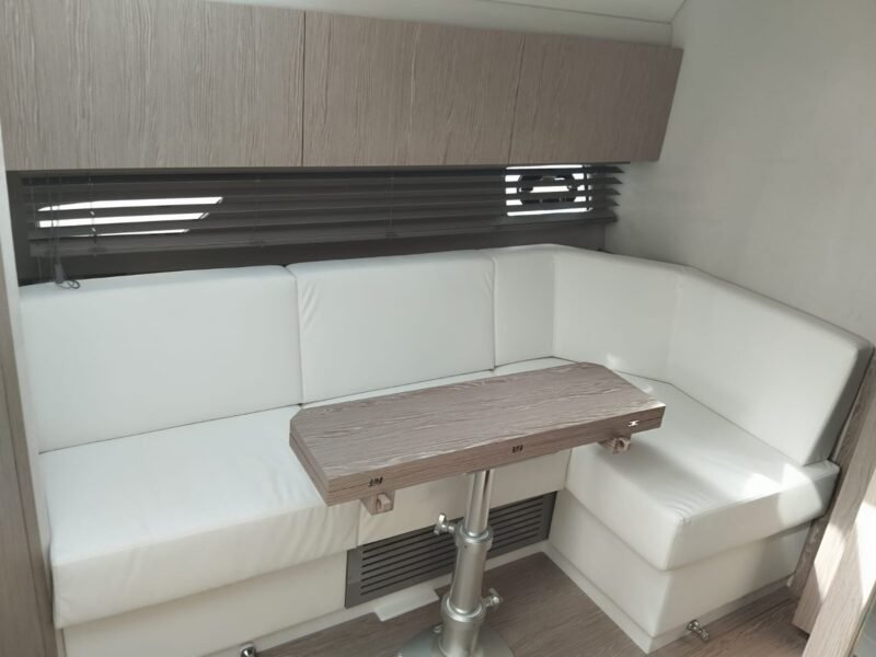 La embarcación cuenta con la versión Breeze, con dos cabinas confortables, salón convertible y cocina totalmente equipada. Los acabados interiores incluyen suelo de madera en la cocina y los baños, suelo enmoquetado en las cabinas y el salón, puertas con espejo y iluminación LED en todo el interior.