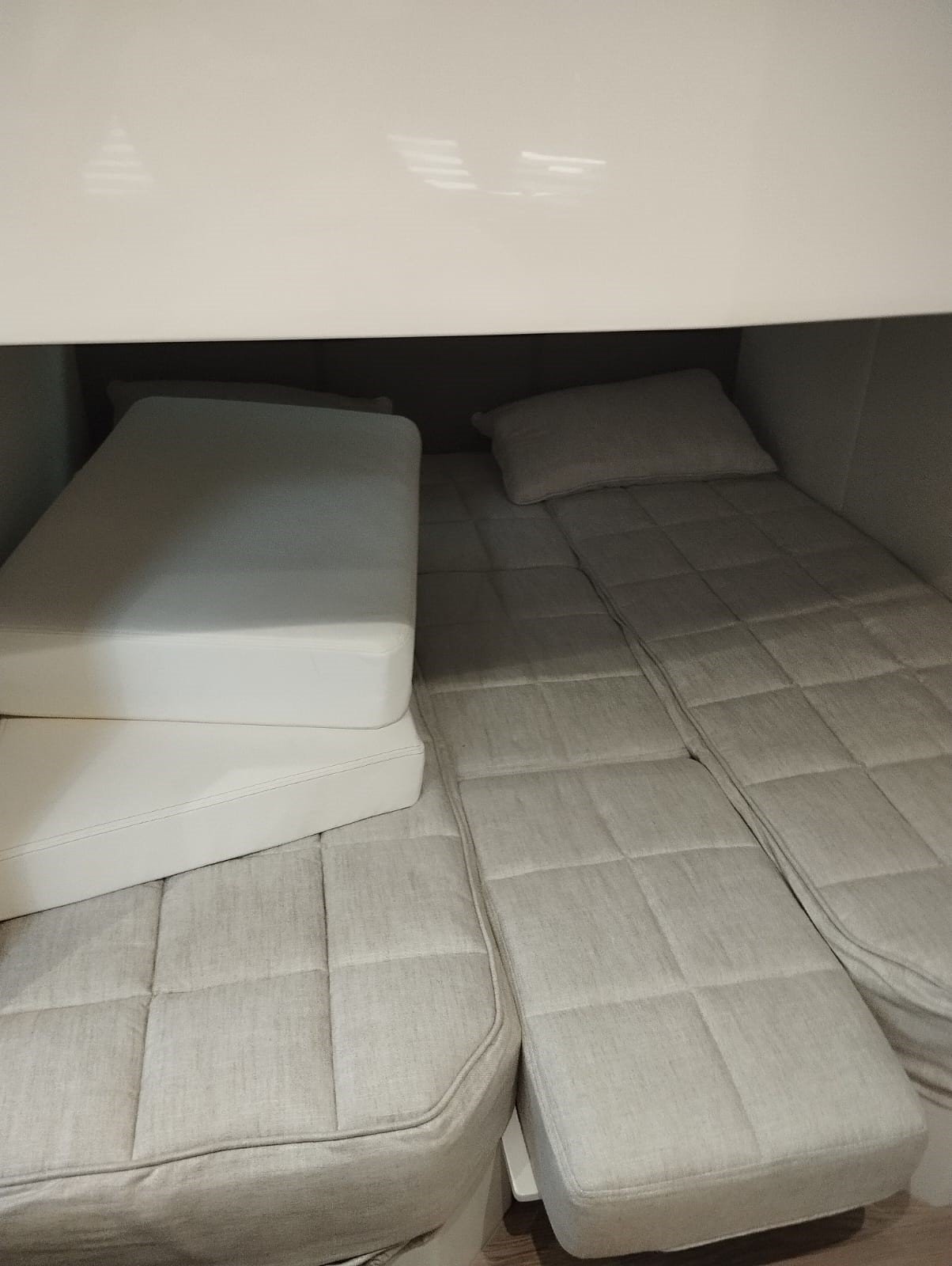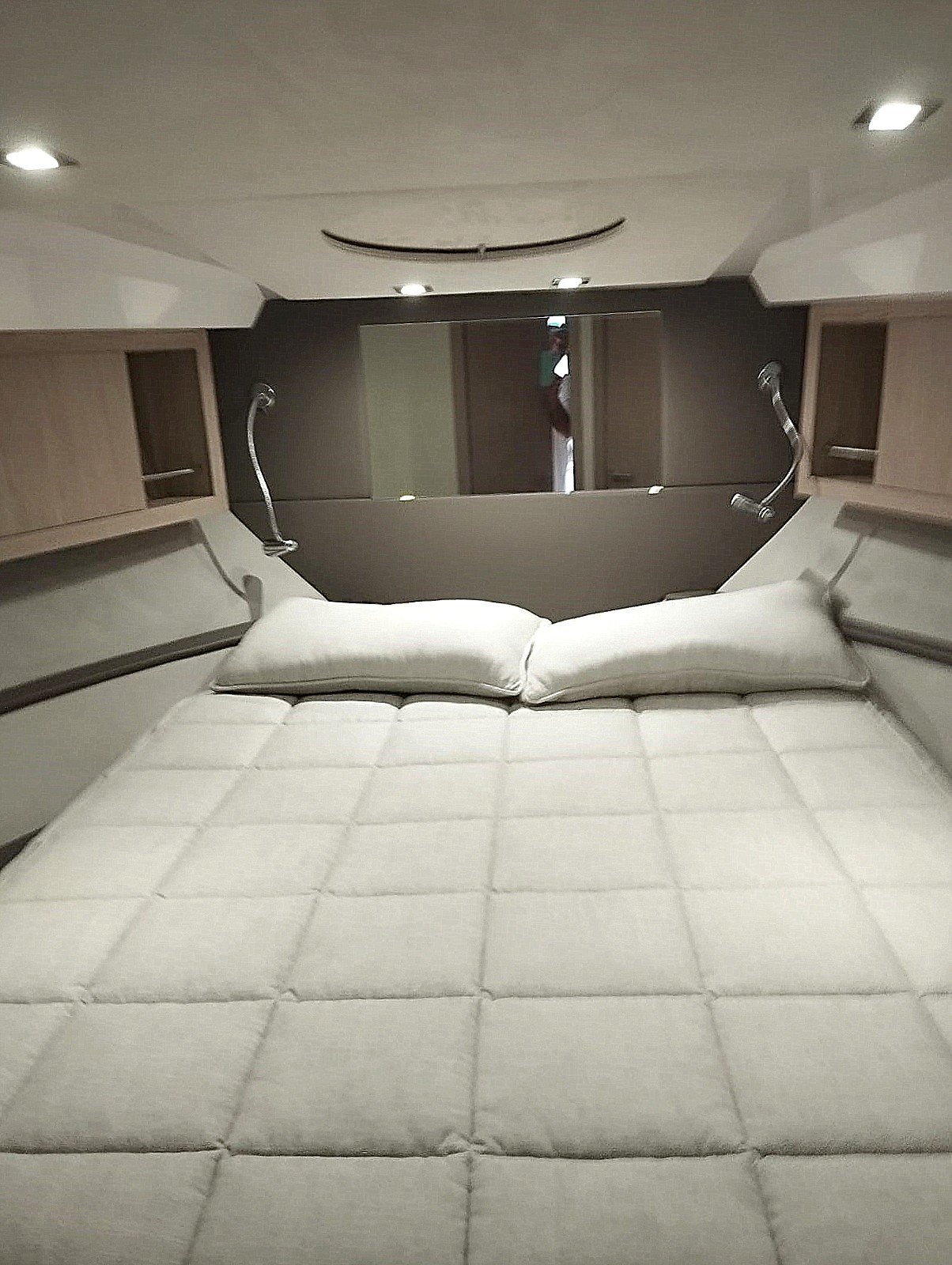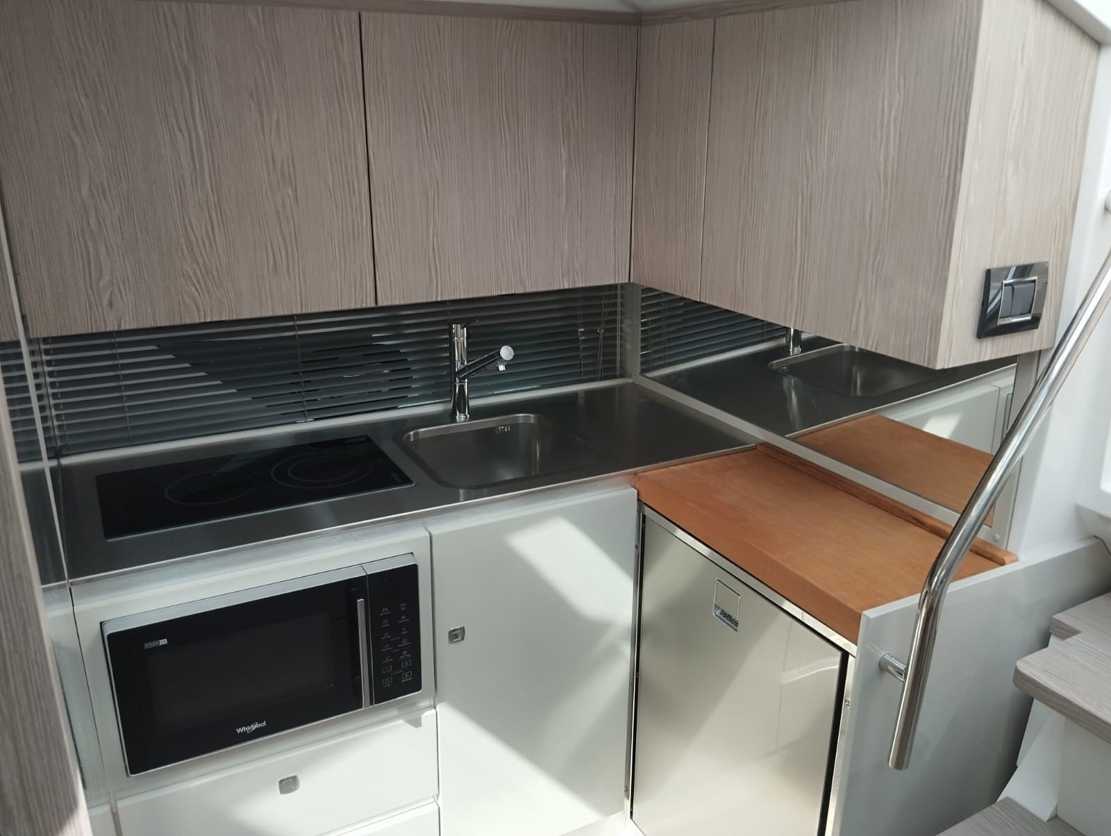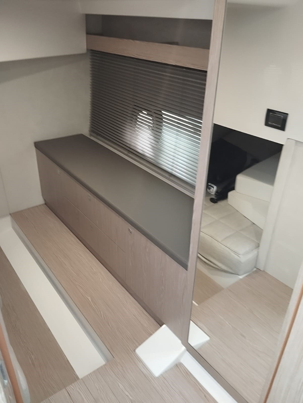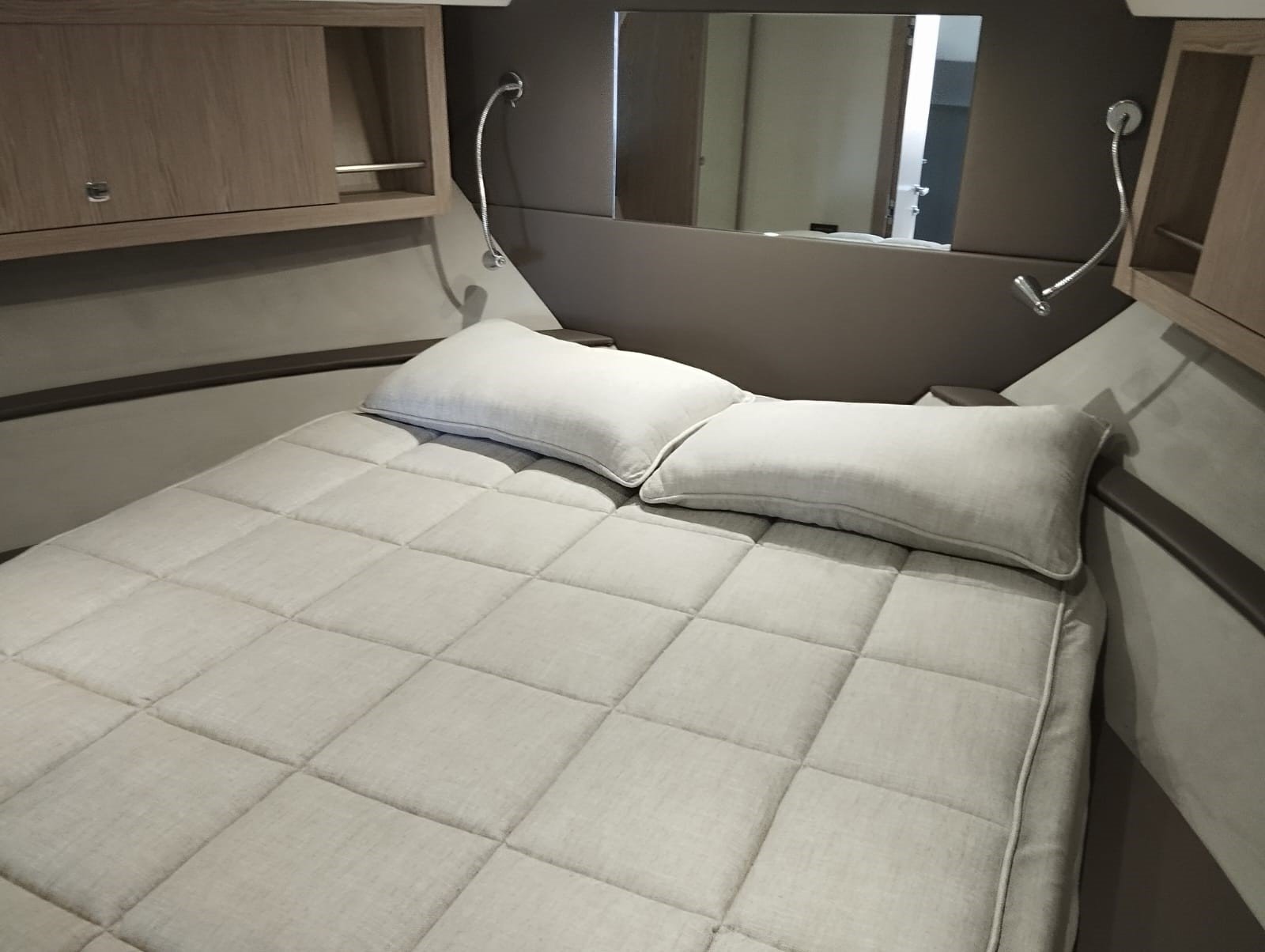 La embarcación cuenta con la versión Breeze, con dos cabinas confortables, salón convertible y cocina totalmente equipada. Los acabados interiores incluyen suelo de madera en la cocina y los baños, suelo enmoquetado en las cabinas y el salón, puertas con espejo y iluminación LED en todo el interior.