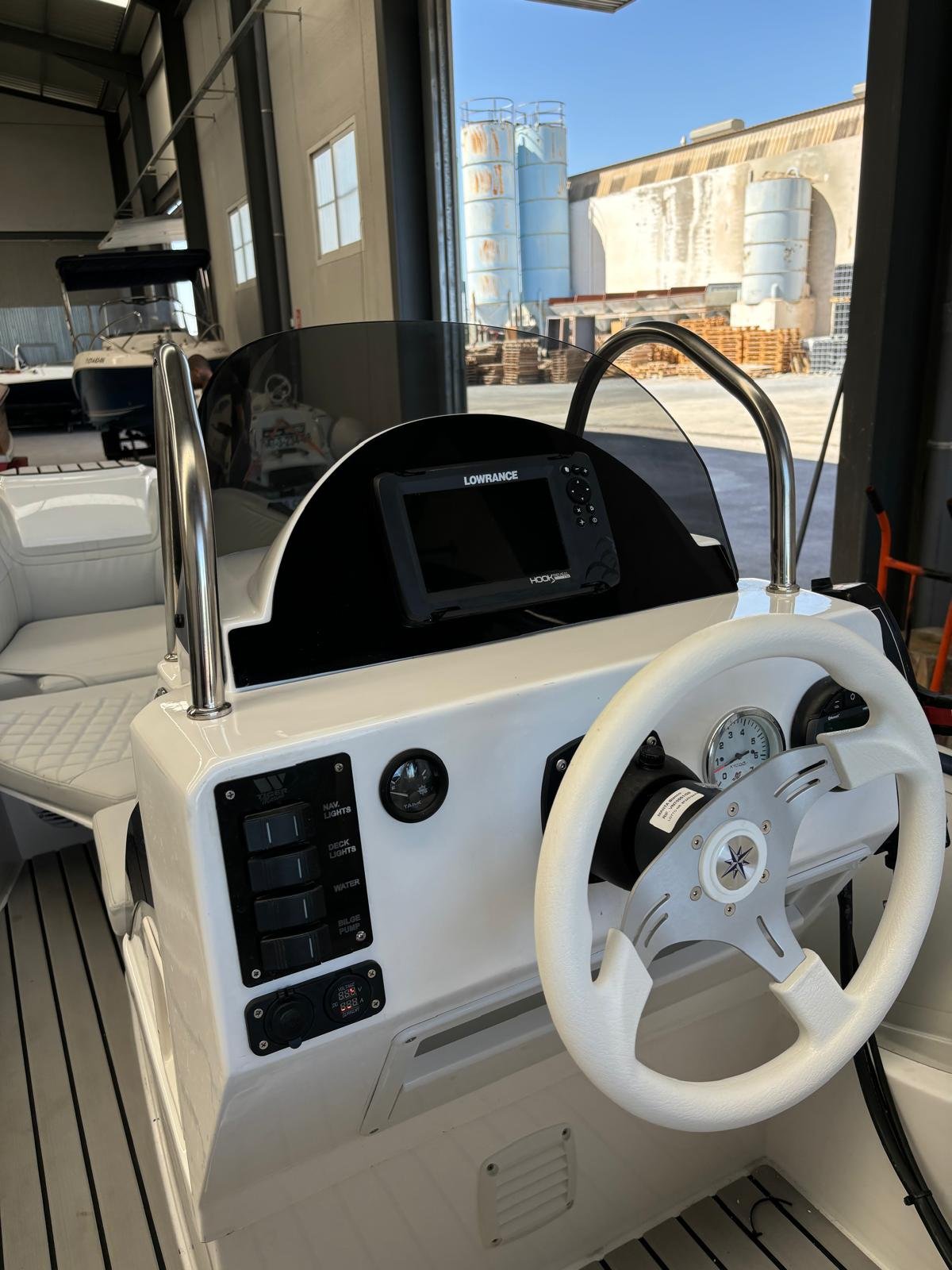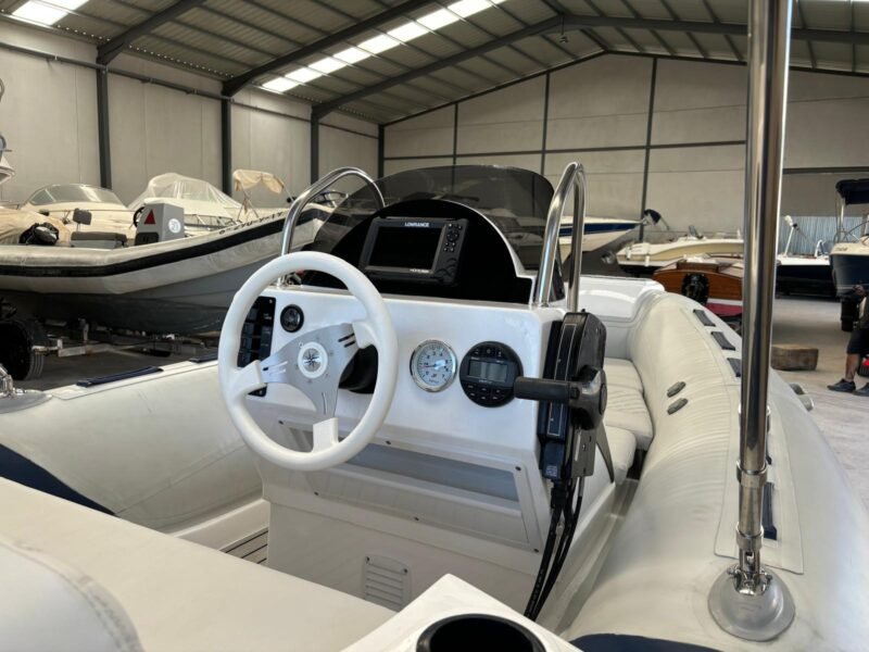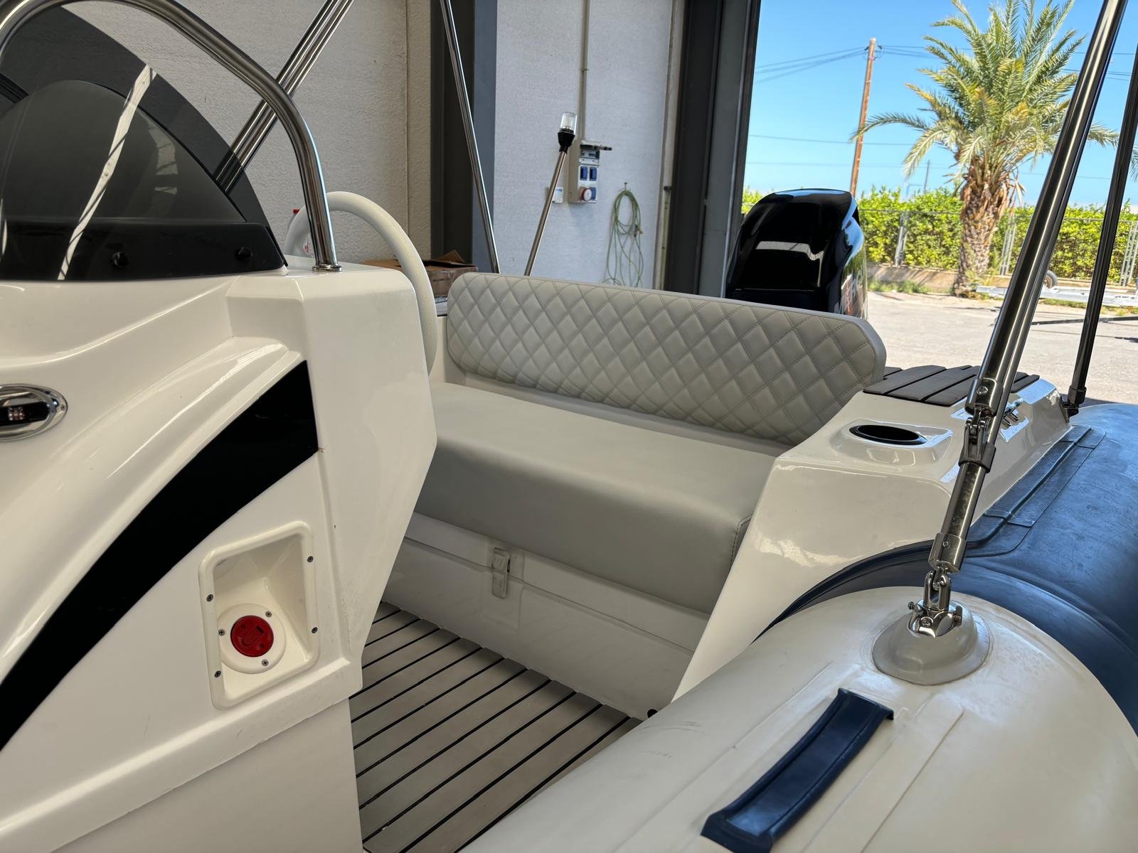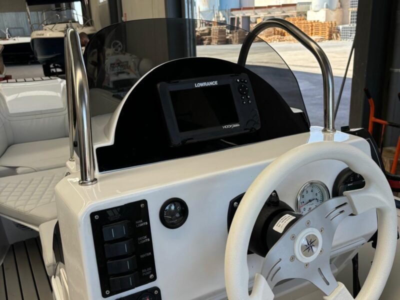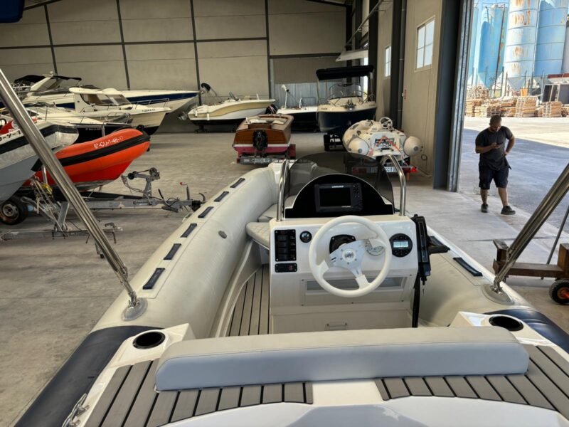 A bordo, la consola central y los asientos acolchados proporcionan un espacio ordenado y accesible, ideal para moverse con facilidad. Su distribución abierta y su tamaño compacto simplifican tanto el transporte como el amarre, convirtiéndola en una opción muy interesante para quienes buscan una semirrígida funcional y versátil.